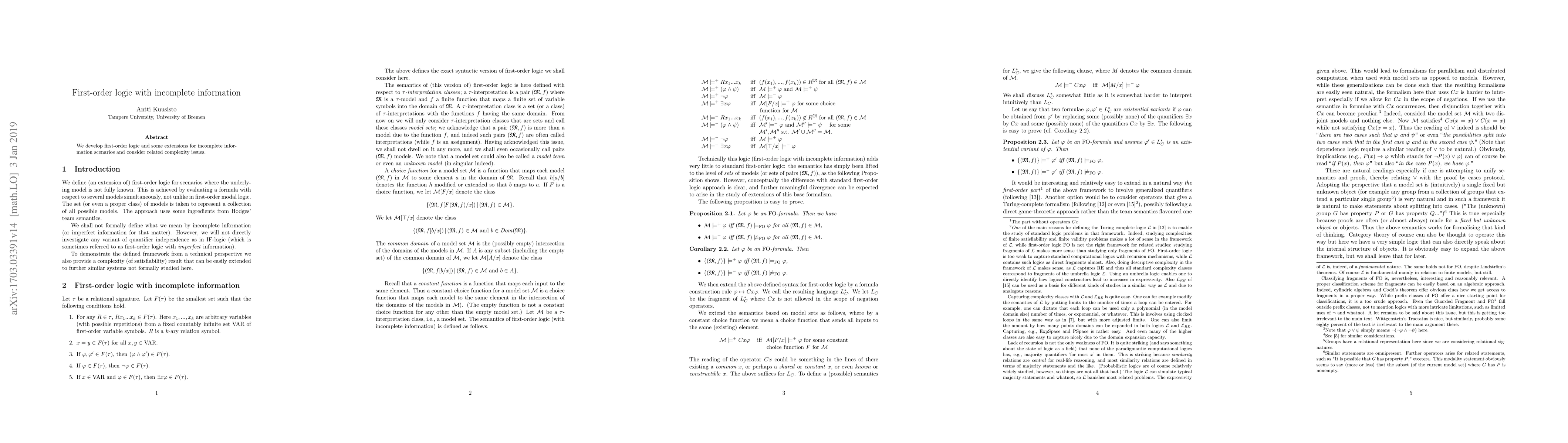 Researchers develop a logical framework for handling incomplete information in first-order logic, exploring its complexity implications.