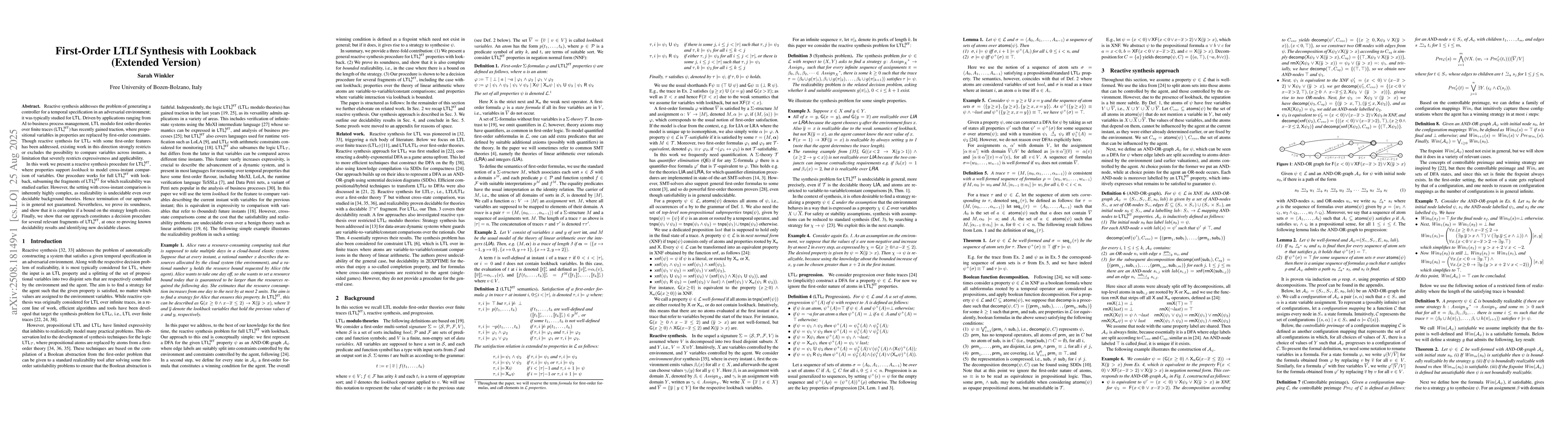 Reactive synthesis addresses the problem of generating a controller for a temporal specification in an adversarial environment; it was typically studied for LTL. Driven by applications ranging from AI to business process management, LTL modulo first order-theories over finite traces (LTLfMT) has recently gained traction, where propositional variables in properties are replaced by first-order constraints. Though reactive synthesis for LTLf with some first-order features has been addressed, existing work in this direction strongly restricts or excludes the possibility to compare variables across instants, a limitation that severely restricts expressiveness and applicability. In this work we present a reactive synthesis procedure for LTLfMT, where properties support "lookback" to model cross-instant comparison of variables. Our procedure works for full LTLfMT with lookback, subsuming the fragments of LTLfMT for which realizability was studied earlier. However, the setting with cross-instant comparison is inherently highly complex, as realizability is undecidable even over decidable background theories. Hence termination of our approach is in general not guaranteed. Nevertheless, we prove its soundness, and show that it is complete if a bound on the strategy length exists. Finally, we show that our approach constitutes a decision procedure for several relevant fragments of LTLfMT, at once re-proving known decidability results and identifying new decidable classes.