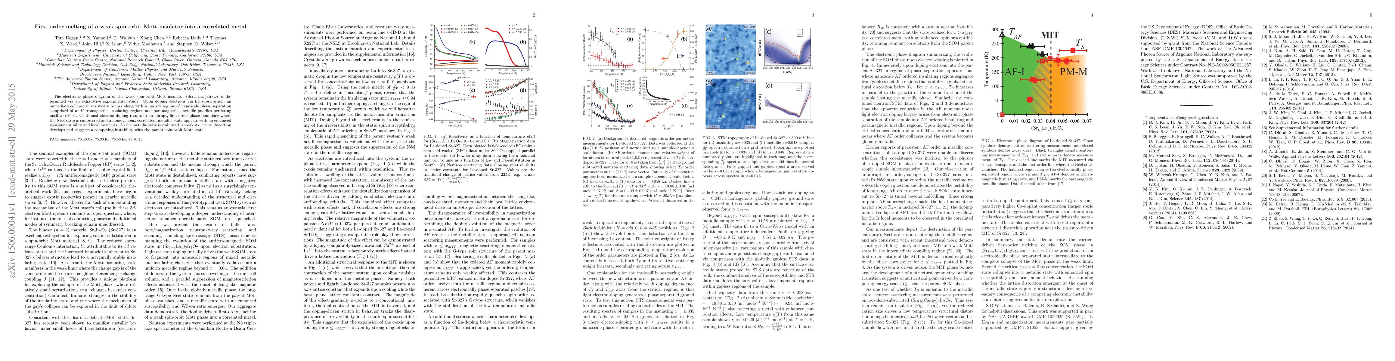 Researchers studied a specific material that changes from an insulator to a metal when electrons are added, creating a phase boundary where the material becomes metallic. This discovery sheds light on the transition between insulating and metallic states in materials with weak spin-orbit coupling.