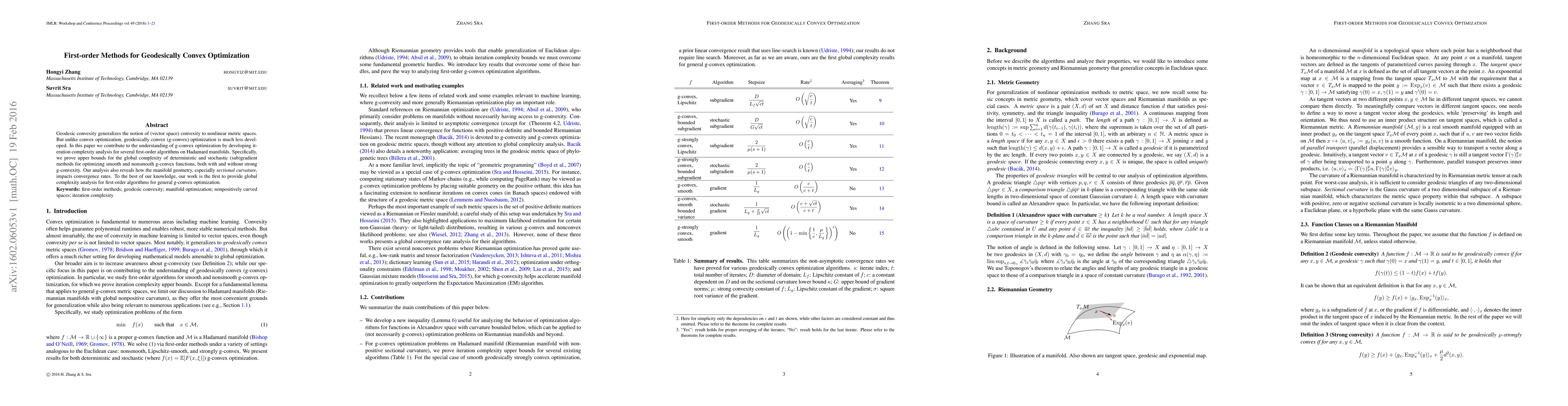 Geodesic convexity generalizes the notion of (vector space) convexity to nonlinear metric spaces. But unlike convex optimization, geodesically convex (g-convex) optimization is much less developed. In this paper we contribute to the understanding of g-convex optimization by developing iteration complexity analysis for several first-order algorithms on Hadamard manifolds. Specifically, we prove upper bounds for the global complexity of deterministic and stochastic (sub)gradient methods for optimizing smooth and nonsmooth g-convex functions, both with and without strong g-convexity. Our analysis also reveals how the manifold geometry, especially \emph{sectional curvature}, impacts convergence rates. To the best of our knowledge, our work is the first to provide global complexity analysis for first-order algorithms for general g-convex optimization.