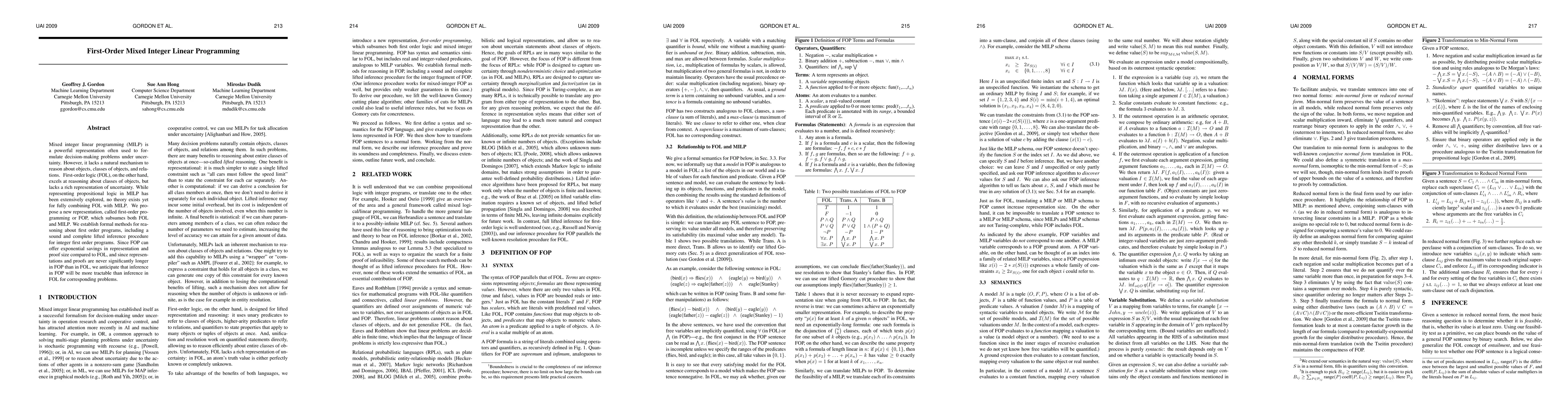 This paper proposes first-order programming (FOP), a new representation that combines mixed integer linear programming (MILP) with first-order logic (FOL) to address both uncertainty and reasoning about classes of objects. It establishes a sound and complete lifted inference procedure for integer first-order programs, anticipating more tractable inference compared to FOL alone.