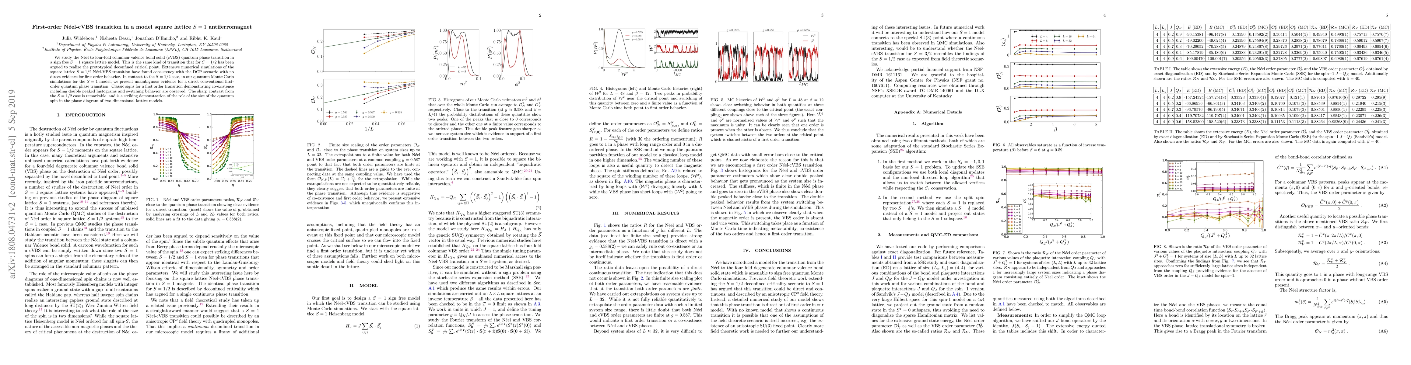 This paper reports a first-order N\'eel-to-four-fold columnar valence bond solid (cVBS) quantum phase transition in a $S=1$ square lattice antiferromagnet, contrasting with the deconfined critical point behavior observed in $S=1/2$ models, and provides evidence through quantum Monte Carlo simulations.