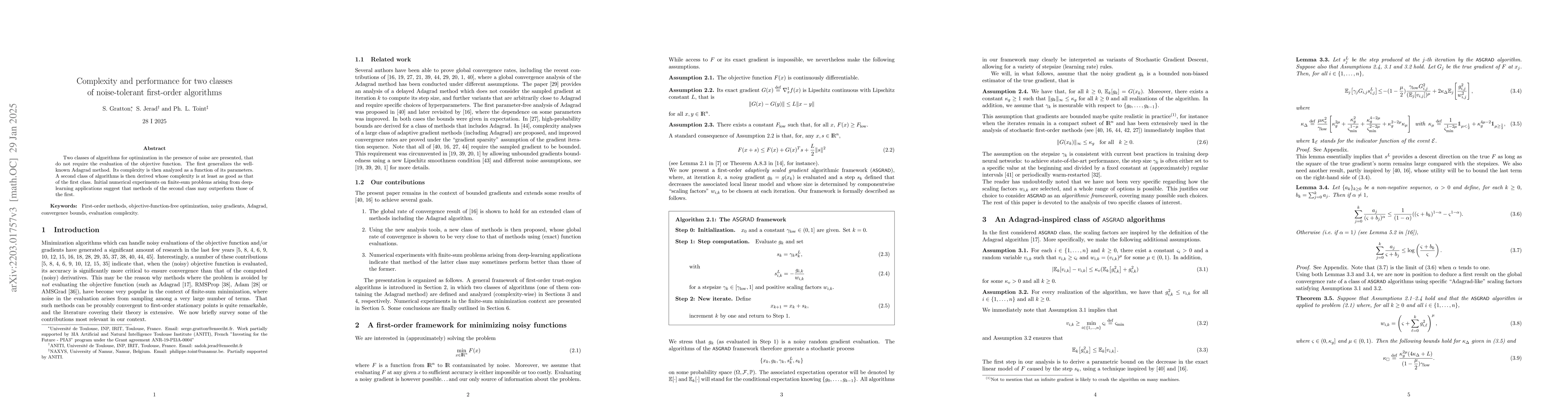 A class of algorithms for unconstrained nonconvex optimization is considered where the value of the objective function is never computed. The class contains a deterministic version of the first-order Adagrad method typically used for minimization of noisy function, but also allows the use of second-order information when available. The rate of convergence of methods in the class is analyzed and is shown to be identical to that known for first-order optimization methods using both function and gradients values. The result is essentially sharp and improves on previously known complexity bounds (in the stochastic context) by Defossez et al. (2020) and Gratton et al. (2022). A new class of methods is designed, for which a slightly worse and essentially sharp complexity result holds. Limited numerical experiments show that the new methods' performance may be comparable to that of standard steepest descent, despite using significantly less information, and that this performance is relatively insensitive to noise.