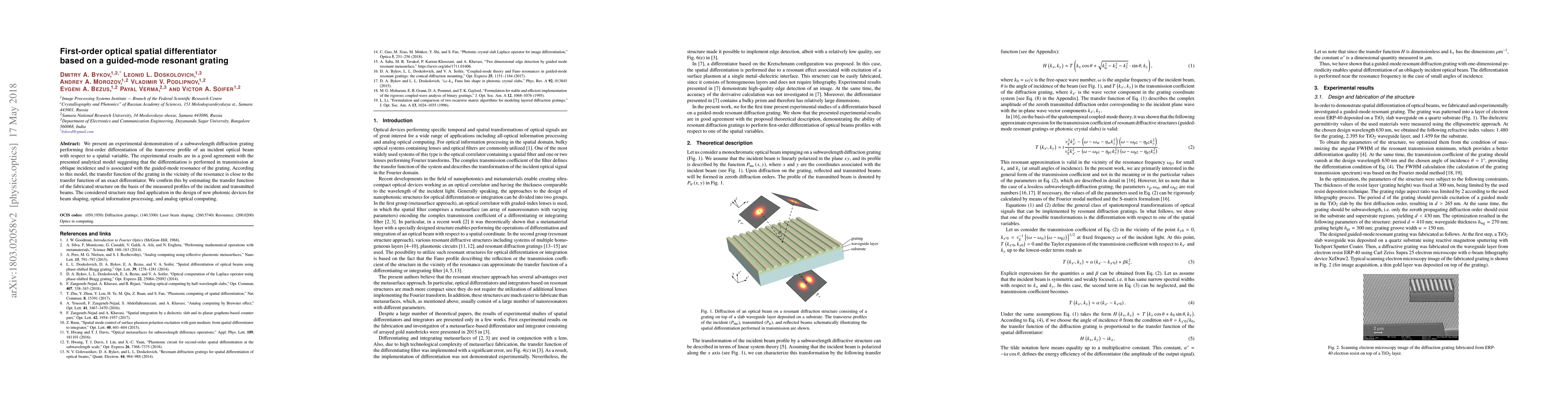 Researchers demonstrate a subwavelength diffraction grating that can perform first-order optical differentiation of an incident beam's profile, showing promising results for beam shaping and analog optical computing applications.