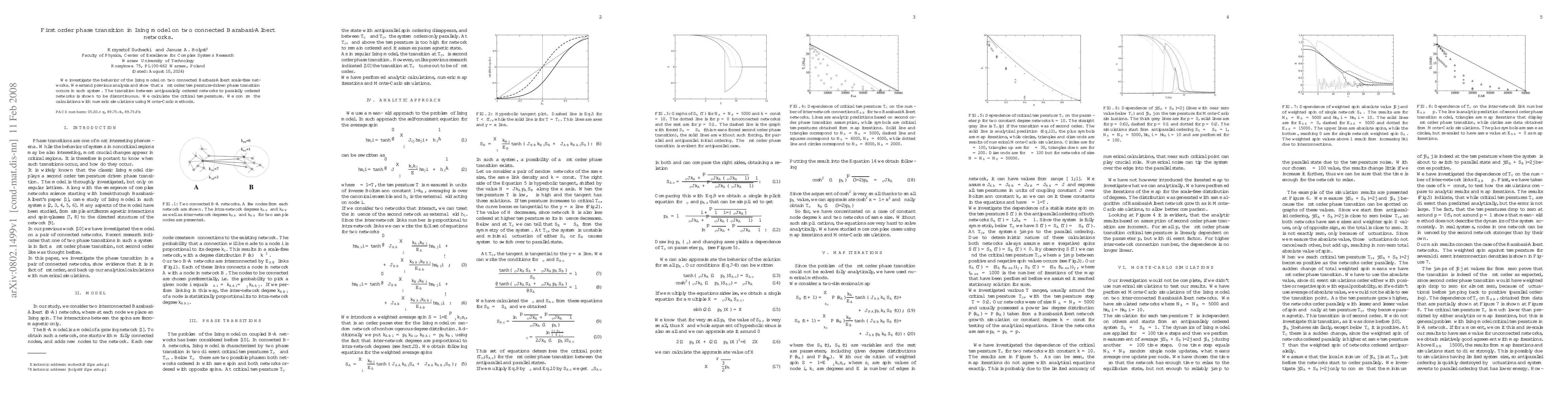 This paper investigates the Ising model on two connected Barabasi-Albert networks, demonstrating a first order temperature-driven phase transition with a discontinuous transition from antiparallel to parallel ordering. The critical temperature is calculated and verified through Monte-Carlo simulations.