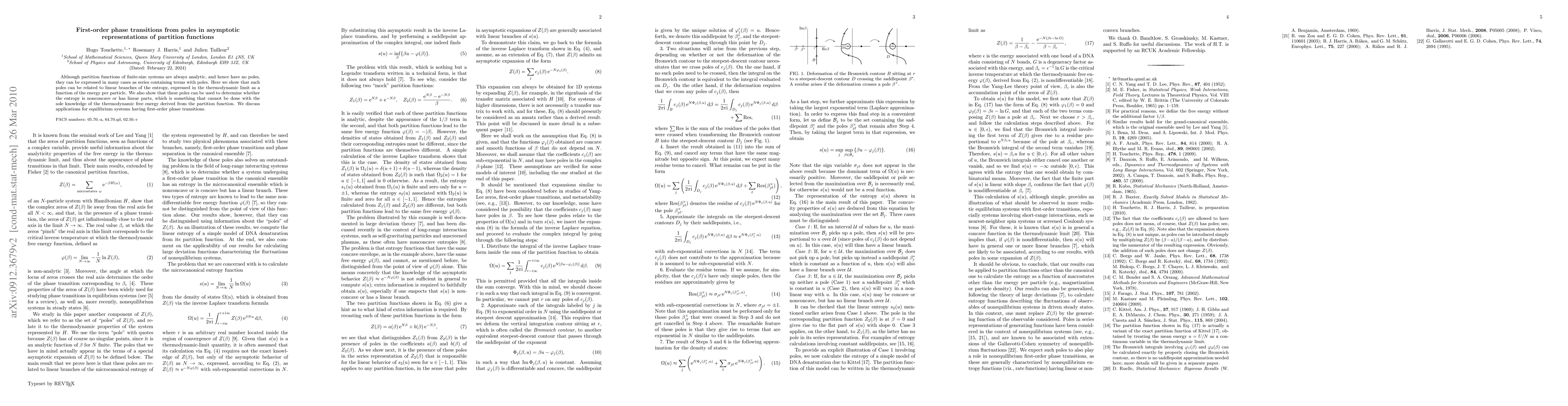Although partition functions of finite-size systems are always analytic, and hence have no poles, they can be expressed in many cases as series containing terms with poles. Here we show that such poles can be related to linear branches of the entropy, expressed in the thermodynamic limit as a function of the energy per particle. We also show that these poles can be used to determine whether the entropy is nonconcave or has linear parts, which is something that cannot be done with the sole knowledge of the thermodynamic free energy derived from the partition function. We discuss applications for equilibrium systems having first-order phase transitions.