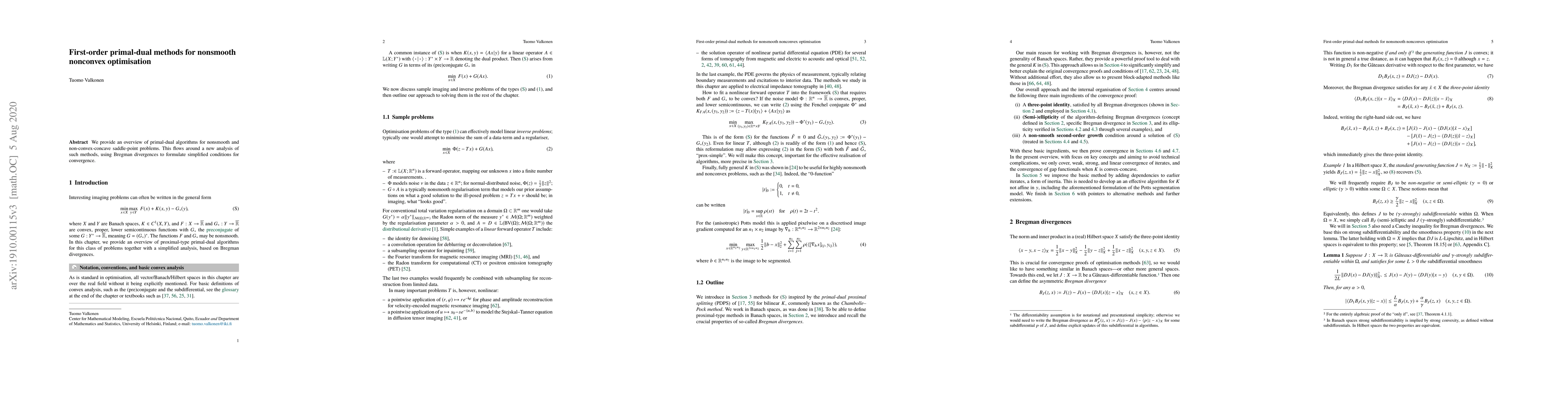 We provide an overview of primal-dual algorithms for nonsmooth and non-convex-concave saddle-point problems. This flows around a new analysis of such methods, using Bregman divergences to formulate simplified conditions for convergence.