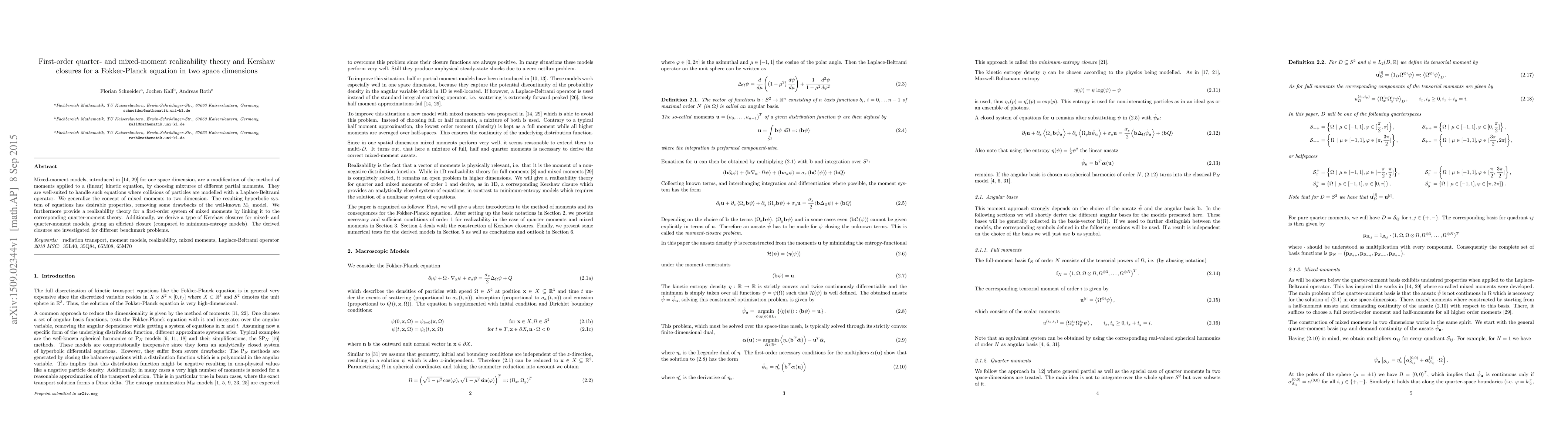 Mixed-moment models, introduced before for one space dimension, are a modification of the method of moments applied to a (linear) kinetic equation, by choosing mixtures of different partial moments. They are well-suited to handle such equations where collisions of particles are modelled with a Laplace-Beltrami operator. We generalize the concept of mixed moments to two dimension. The resulting hyperbolic system of equations has desirable properties, removing some drawbacks of the well-known $\MN[1]$ model. We furthermore provide a realizability theory for a first-order system of mixed moments by linking it to the corresponding quarter-moment theory. Additionally, we derive a type of Kershaw closures for mixed- and quarter-moment models, giving an efficient closure (compared to minimum-entropy models). The derived closures are investigated for different benchmark problems.