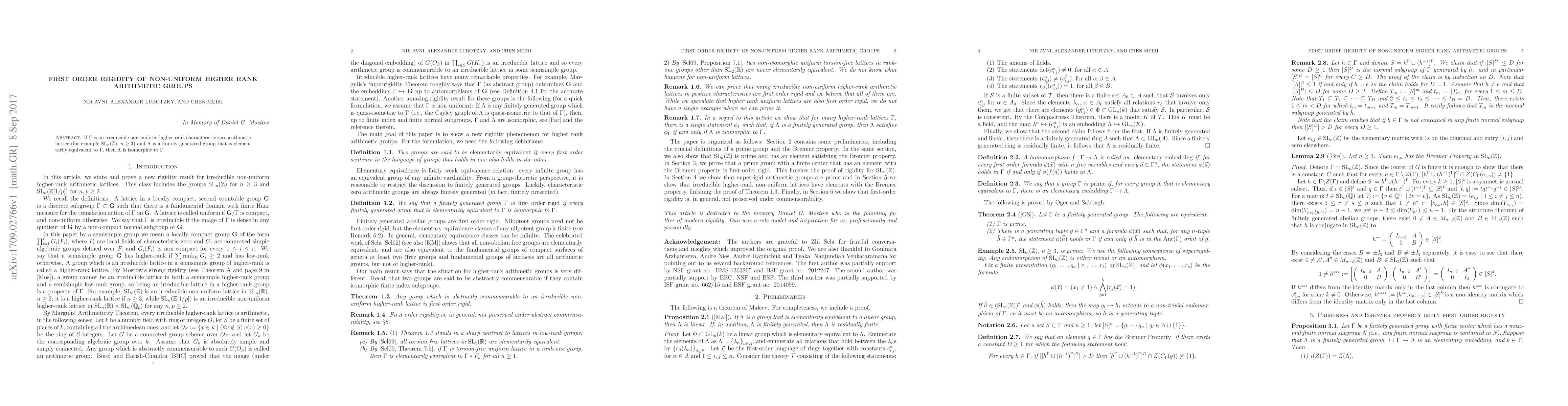 If $\Gamma$ is an irreducible non-uniform higher-rank characteristic zero arithmetic lattice (for example, $SL_n(\mathbb{Z})$, $n \geq 3$) and $\Lambda$ is a finitely generated group that is elementarily equivalent to $\Gamma$, then $\Lambda$ is isomorphic to $\Gamma$.