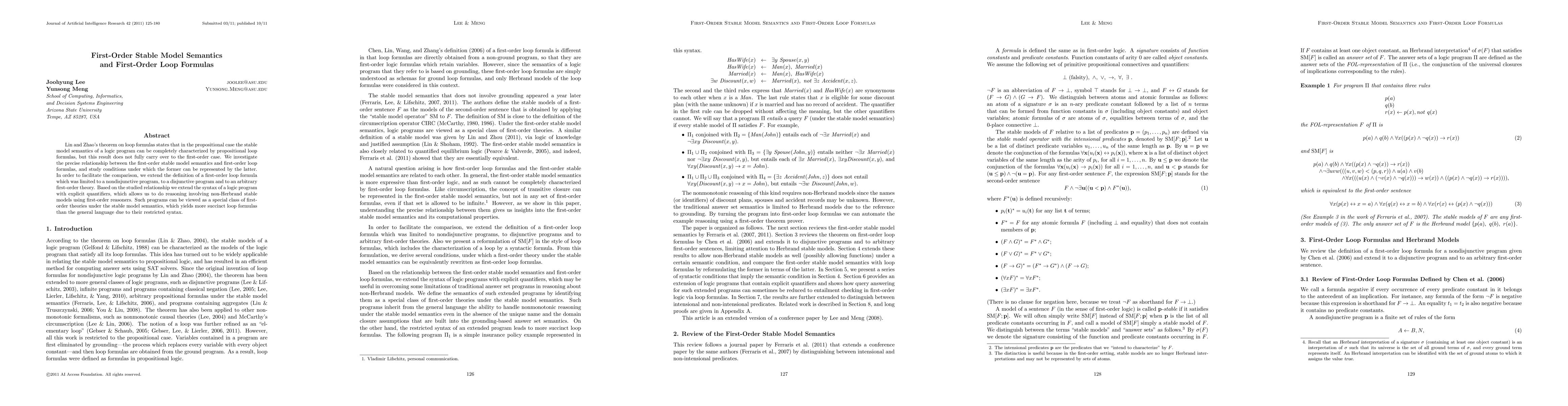 This paper investigates the relationship between first-order stable model semantics and first-order loop formulas, extending the latter to disjunctive programs and arbitrary first-order theories. It proposes conditions under which stable model semantics can be represented by these extended loop formulas, facilitating reasoning with non-Herbrand stable models using first-order reasoners.