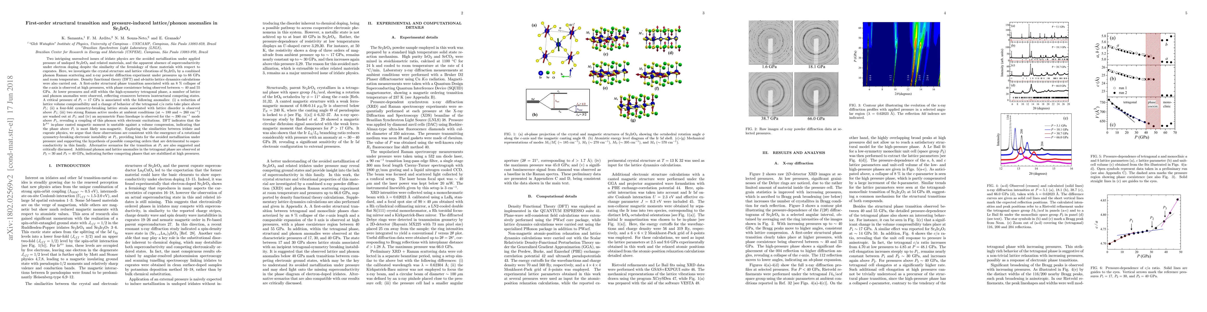 This study investigates the structural and phonon anomalies in Sr$_2$IrO$_4$ under high pressure, revealing a first-order phase transition at high pressures with phase coexistence and lattice/phonon anomalies at lower pressures. The transition hints at rotational symmetry-breaking electronic instability and competing orders potentially detrimental to superconductivity.