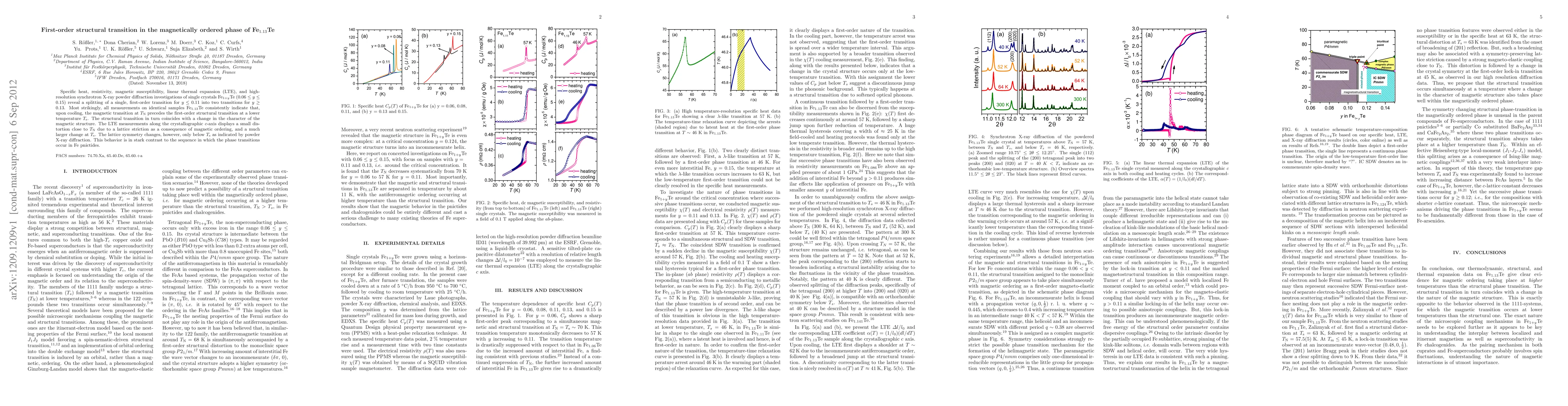 Specific heat, resistivity, magnetic susceptibility, linear thermal expansion (LTE), and high-resolution synchrotron X-ray powder diffraction investigations of single crystals Fe1+yTe (0.06 < y < 0.15) reveal a splitting of a single, first-order transition for y < 0.11 into two transitions for y > 0.12. Most strikingly, all measurements on identical samples Fe1.13Te consistently indicate that, upon cooling, the magnetic transition at T_N precedes the first-order structural transition at a lower temperature T_s. The structural transition in turn coincides with a change in the character of the magnetic structure. The LTE measurements along the crystallographic c-axis displays a small distortion close to T_N due to a lattice striction as a consequence of magnetic ordering, and a much larger change at T_s. The lattice symmetry changes, however, only below T_s as indicated by powder X-ray diffraction. This behavior is in stark contrast to the sequence in which the phase transitions occur in Fe pnictides.