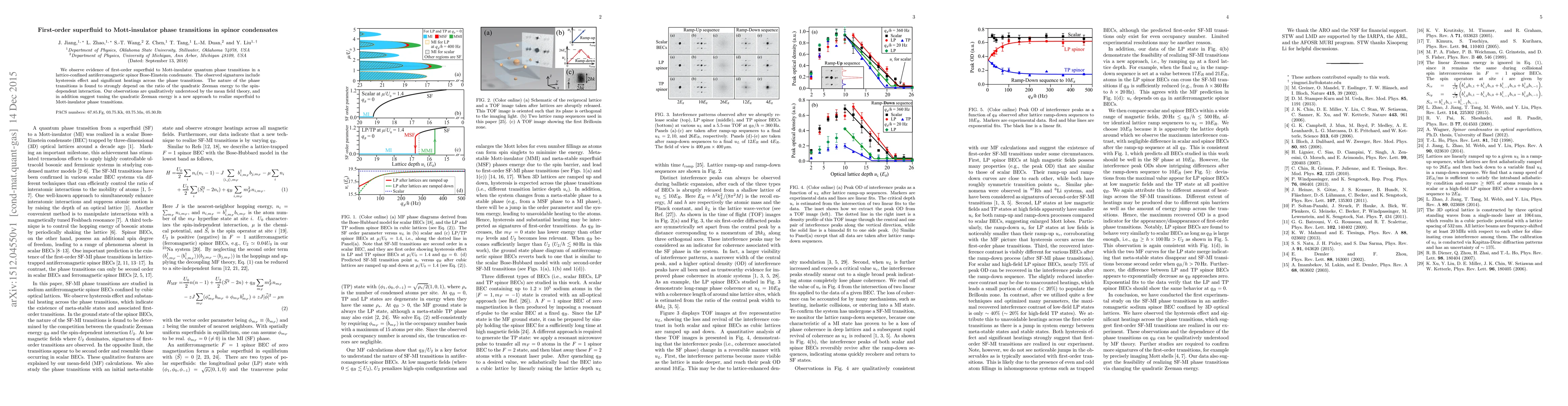 This research observes first-order superfluid to Mott-insulator transitions in antiferromagnetic spinor Bose-Einstein condensates, characterized by hysteresis and significant heating, influenced by the ratio of quadratic Zeeman energy to spin-dependent interaction. Mean field theory explains these transitions, suggesting that adjusting quadratic Zeeman energy can induce such phase changes.