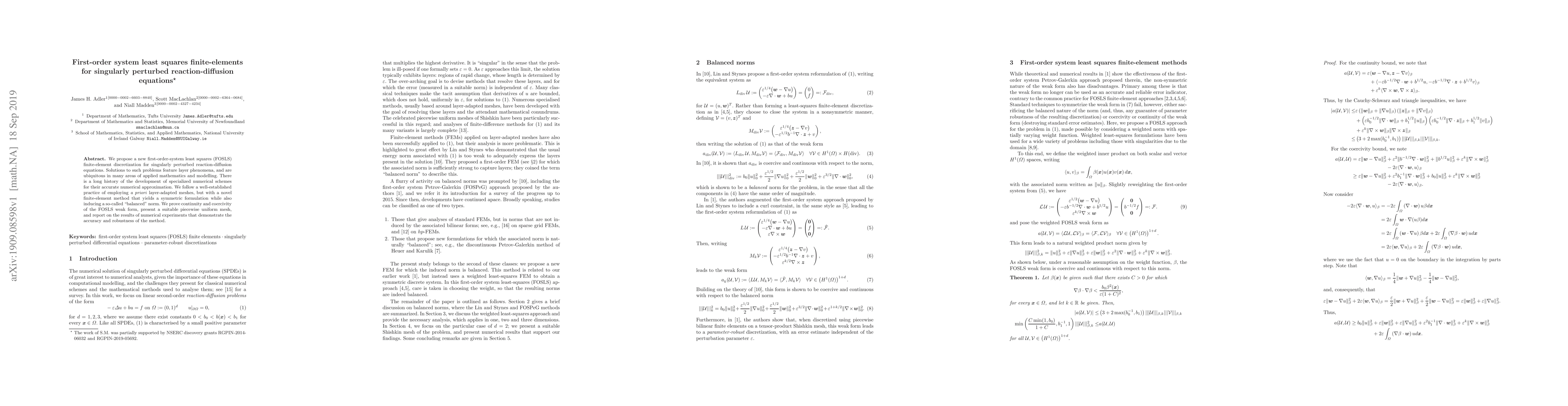 This paper introduces a novel first-order-system least squares finite-element method for solving singularly perturbed reaction-diffusion equations, featuring a symmetric formulation and a balanced norm. The method employs layer-adapted meshes and demonstrates accuracy and robustness through numerical experiments.
