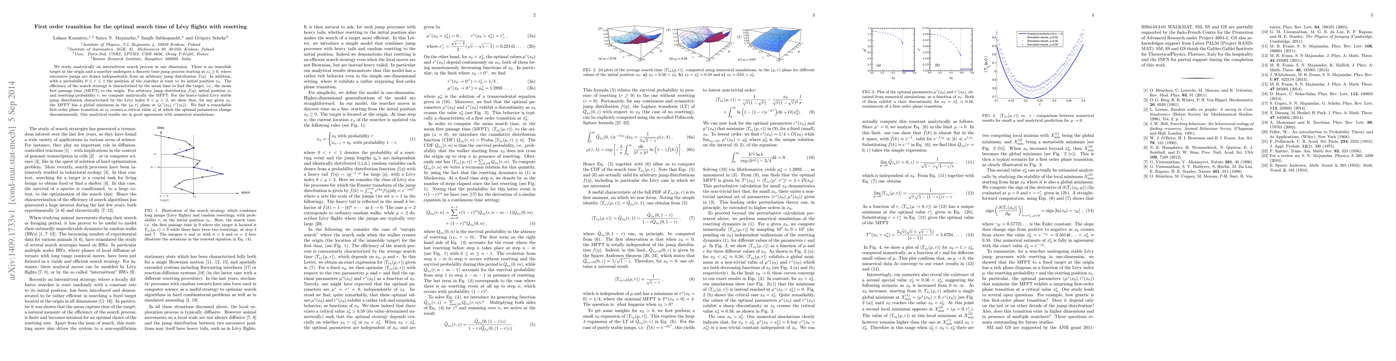 We study analytically an intermittent search process in one dimension. There is an immobile target at the origin and a searcher undergoes a discrete time jump process starting at $x_0\geq0$, where successive jumps are drawn independently from an arbitrary jump distribution $f(\eta)$. In addition, with a probability $0\leq r \leq1$ the position of the searcher is reset to its initial position $x_0$. The efficiency of the search strategy is characterized by the mean time to find the target, i.e., the mean first passage time (MFPT) to the origin. For arbitrary jump distribution $f(\eta)$, initial position $x_0$ and resetting probability $r$, we compute analytically the MFPT. For the heavy-tailed L\'evy stable jump distribution characterized by the L\'evy index $0<\mu < 2$, we show that, for any given $x_0$, the MFPT has a global minimum in the $(\mu,r)$ plane at $(\mu^*(x_0),r^*(x_0))$. We find a remarkable first-order phase transition as $x_0$ crosses a critical value $x_0^*$ at which the optimal parameters change discontinuously. Our analytical results are in good agreement with numerical simulations.