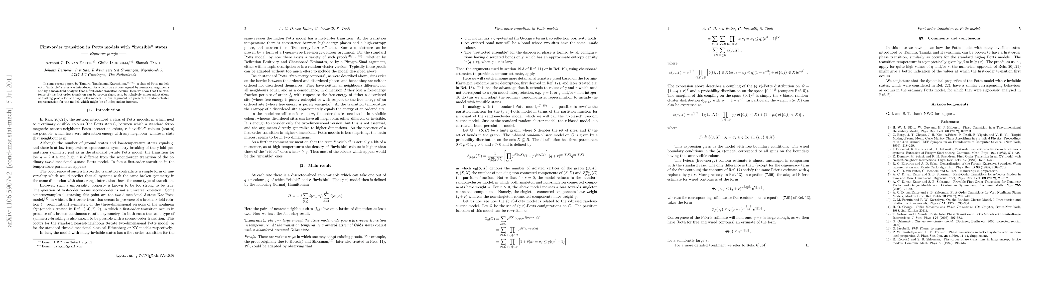 Researchers prove a first-order transition in Potts models with 'invisible' states using a random-cluster representation, offering a rigorous proof that was previously argued numerically or through mean-field analysis.