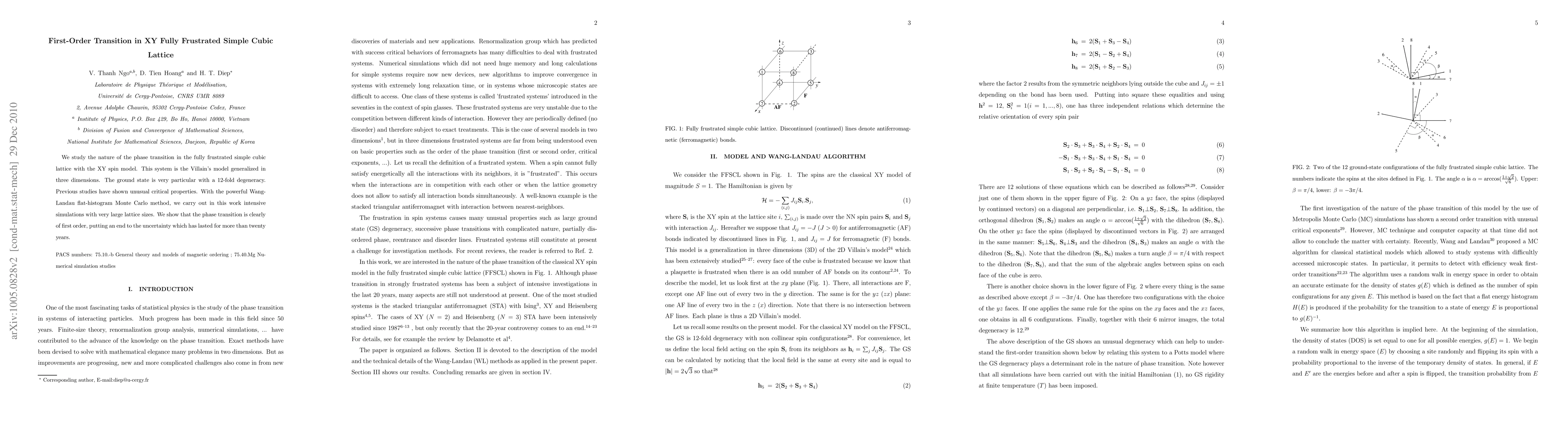 We study the nature of the phase transition in the fully frustrated simple cubic lattice with the XY spin model. This system is the Villain's model generalized in three dimensions. The ground state is very particular with a 12-fold degeneracy. Previous studies have shown unusual critical properties. With the powerful Wang-Landau flat-histogram Monte Carlo method, we carry out in this work intensive simulations with very large lattice sizes. We show that the phase transition is clearly of first order, putting an end to the uncertainty which has lasted for more than twenty years.