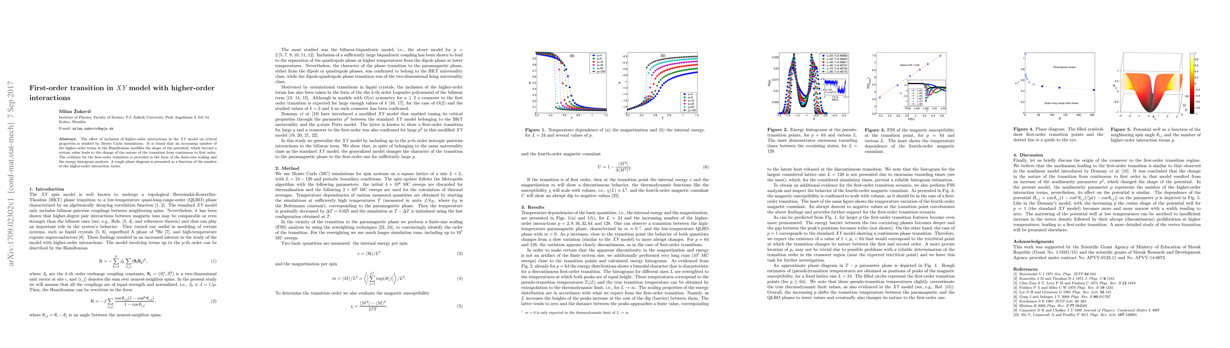 Research shows that adding higher-order interactions to the XY model can change its critical properties, potentially leading to a first-order transition, as evidenced by Monte Carlo simulations and energy histogram analysis.