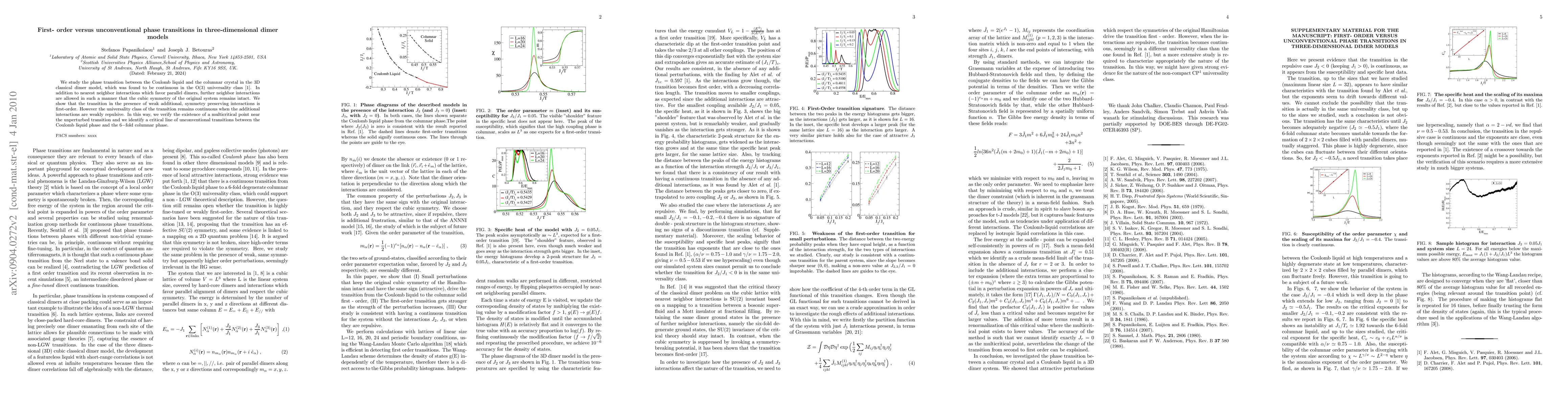 This paper investigates the phase transition in a 3D classical dimer model, finding that it is continuous in the O(3) universality class. The study reveals that the transition becomes first-order with weak additional symmetry-preserving interactions, but remains continuous when these interactions are weakly repulsive, identifying a multicritical point and a critical line for unconventional transitions between phases.