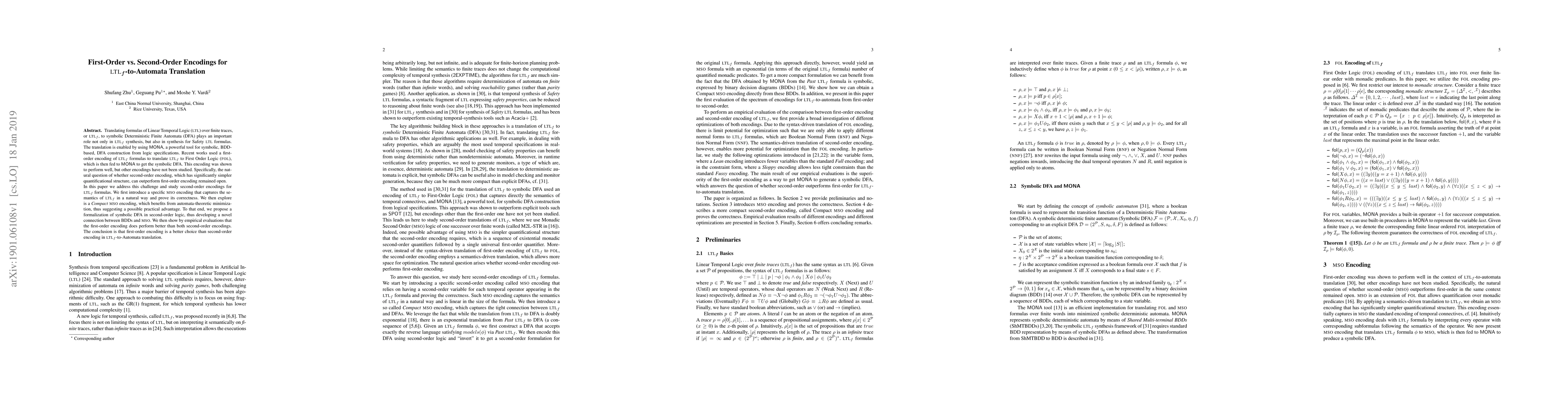 Researchers found that first-order encoding outperforms second-order encodings for translating LTLf formulas to symbolic Deterministic Finite Automata, suggesting a better choice for this specific application.