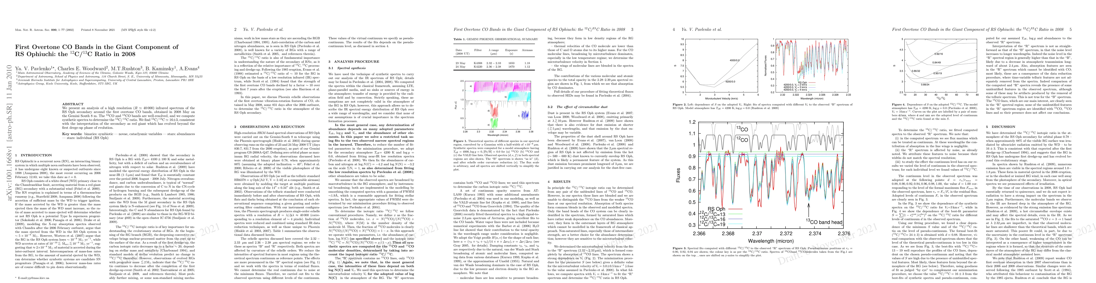We present an analysis of a high resolution (R = 40000) infrared spectrum of the RS Oph secondary around the first overtone CO bands, obtained in 2008 May on the Gemini South 8 m. The 12CO and 13CO bands are well-resolved, and we compute synthetic spectra to determine the 12C/13C ratio. We find 12C/13C = 16 +/- 3, consistent with the interpretation of the secondary as red giant which has evolved beyond the first drege-up phase of evolution.