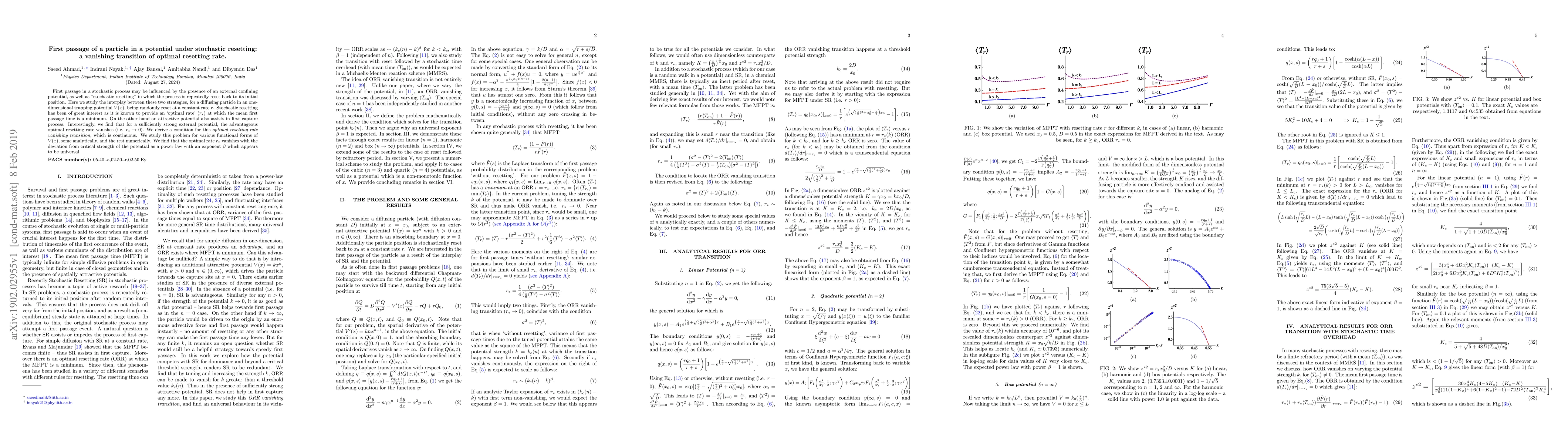 The paper presents a detailed mathematical analysis of the first passage problem under stochastic resetting in the presence of external potentials, deriving conditions for the vanishing optimal resetting rate and validating them through analytical and numerical methods.