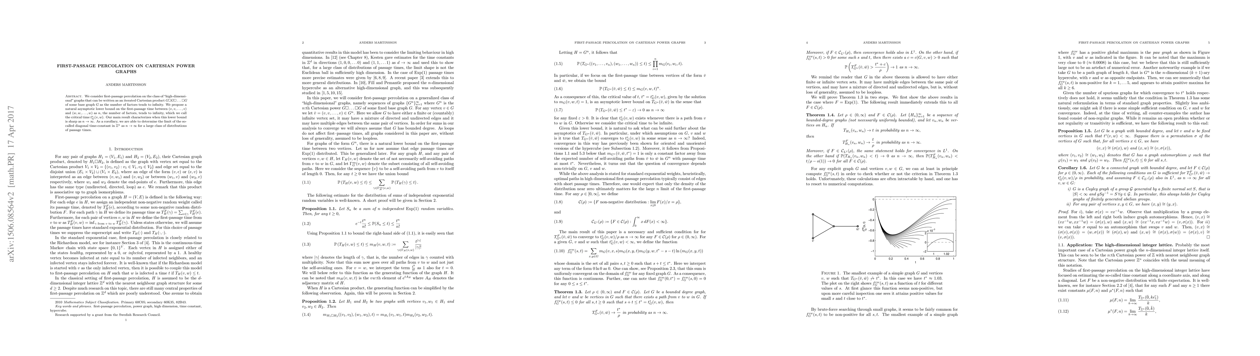 We consider first-passage percolation on the class of "high-dimensional" graphs that can be written as an iterated Cartesian product $G\square G \square \dots \square G$ of some base graph $G$ as the number of factors tends to infinity. We propose a natural asymptotic lower bound on the first-passage time between $(v, v, \dots, v)$ and $(w, w, \dots, w)$ as $n$, the number of factors, tends to infinity, which we call the critical time $t^*_G(v, w)$. Our main result characterizes when this lower bound is sharp as $n\rightarrow\infty$. As a corollary, we are able to determine the limit of the so-called diagonal time-constant in $\mathbb{Z}^n$ as $n\rightarrow\infty$ for a large class of distributions of passage times.