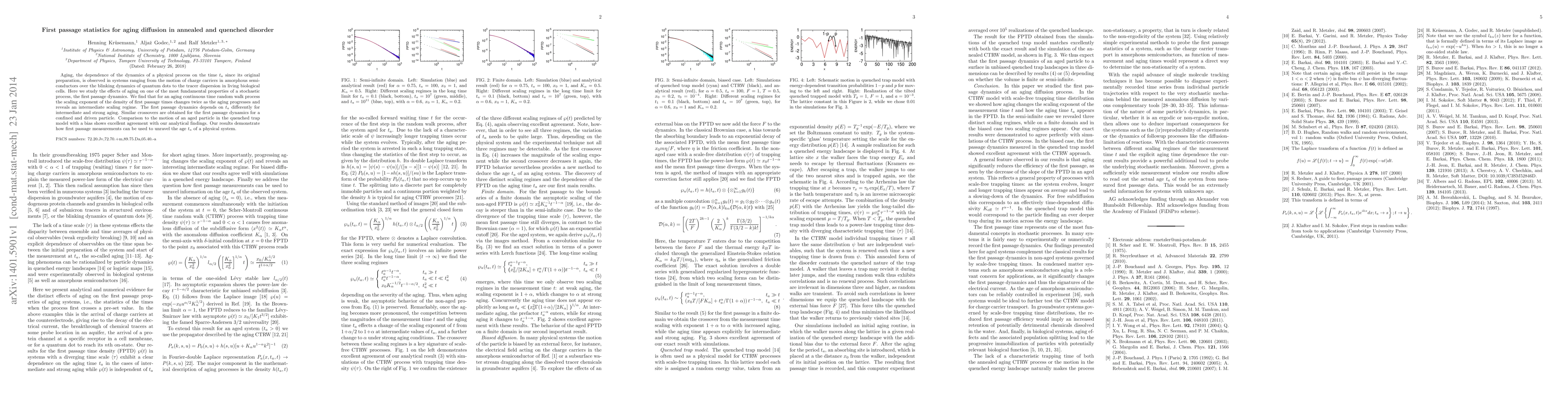 This paper investigates the first passage dynamics in aging systems under annealed and quenched disorder, revealing that the scaling exponent of first passage times changes with aging progression, showing distinct behaviors for intermediate and strong aging. The findings suggest that first passage measurements can determine the aging time of a physical system.
