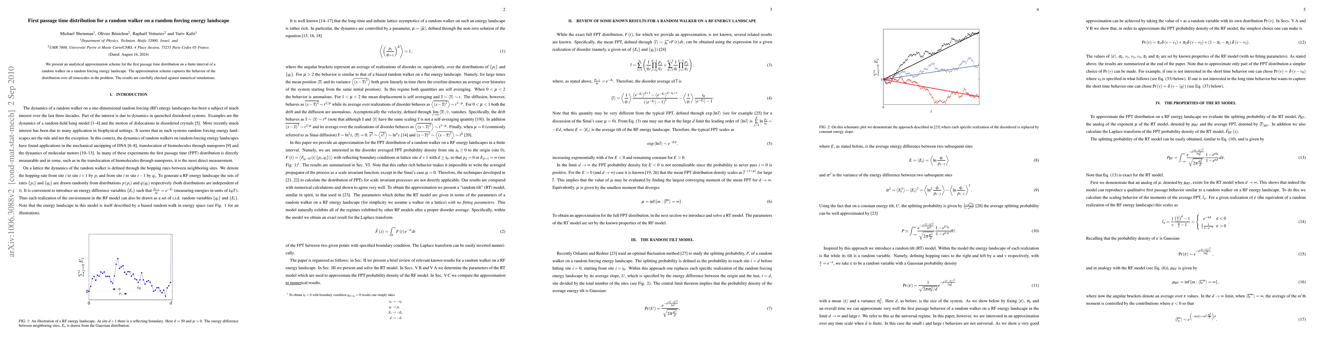 This research introduces an analytical method to approximate the first passage time distribution for a random walker on a random energy landscape, validated through numerical simulations, offering insights into the behavior across all timescales.