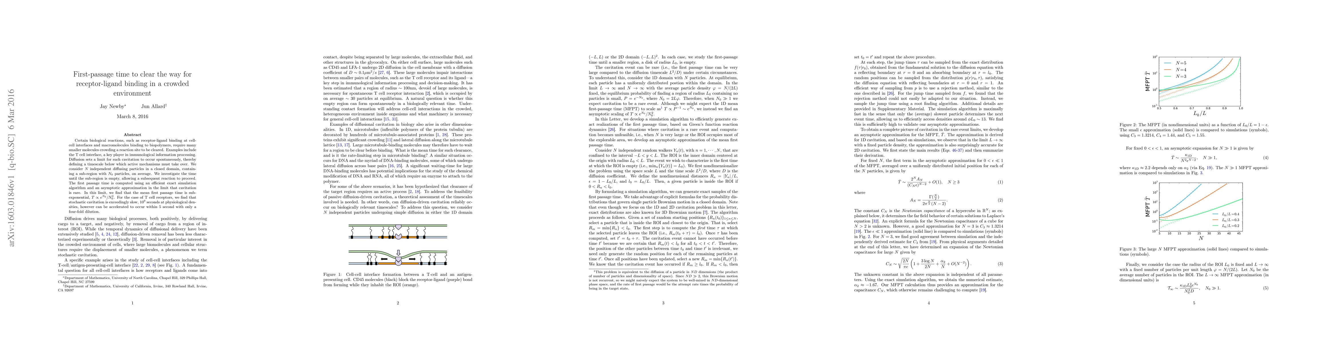 This paper investigates the first-passage time required to clear a crowded environment for receptor-ligand binding, finding that stochastic cavitation is exceedingly slow at physiological densities but can be accelerated through dilution. The study uses simulation and asymptotic methods to determine the mean first passage time, revealing a sub-exponential relationship.