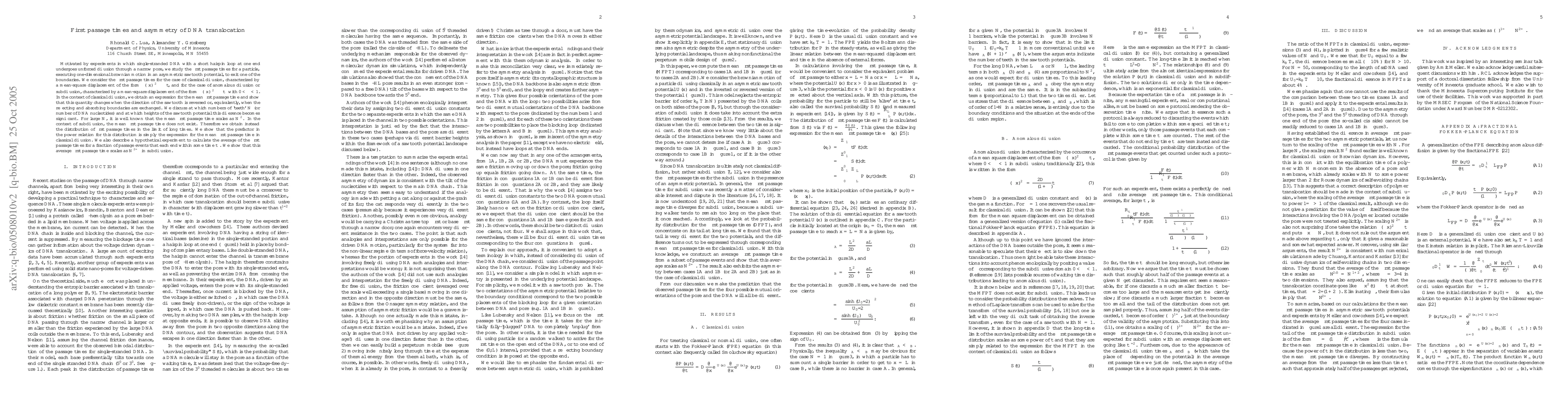 This research explores the first passage times for DNA translocation in an asymmetric sawtooth potential.