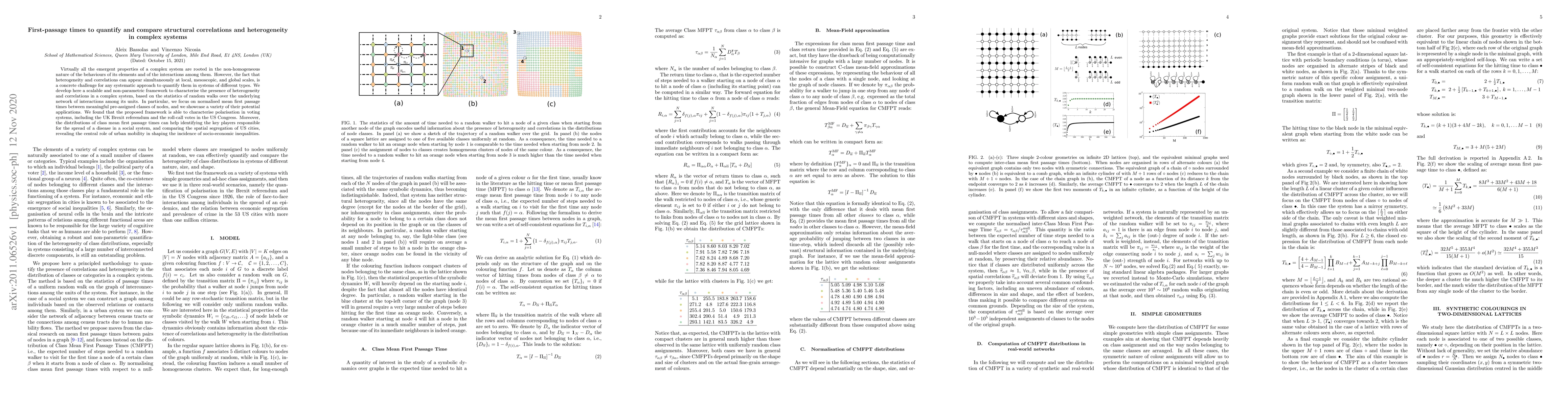 Virtually all the emergent properties of a complex system are rooted in the non-homogeneous nature of the behaviours of its elements and of the interactions among them. However, the fact that heterogeneity and correlations can appear simultaneously at local, mesoscopic, and global scales, is a concrete challenge for any systematic approach to quantify them in systems of different types. We develop here a scalable and non-parametric framework to characterise the presence of heterogeneity and correlations in a complex system, based on the statistics of random walks over the underlying network of interactions among its units. In particular, we focus on normalised mean first passage times between meaningful pre-assigned classes of nodes, and we showcase a variety of their potential applications. We found that the proposed framework is able to characterise polarisation in voting systems, including the UK Brexit referendum and the roll-call votes in the US Congress. Moreover, the distributions of class mean first passage times can help identifying the key players responsible for the spread of a disease in a social system, and comparing the spatial segregation of US cities, revealing the central role of urban mobility in shaping the incidence of socio-economic inequalities.