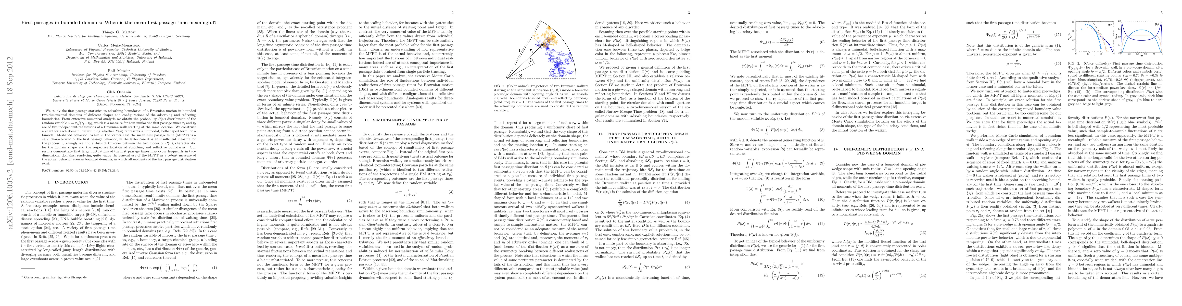 The paper presents a detailed analysis of first passage times in bounded domains, introducing the distribution P(ω) to quantify the similarity of first passage times and identifying conditions under which MFPT is a meaningful measure.