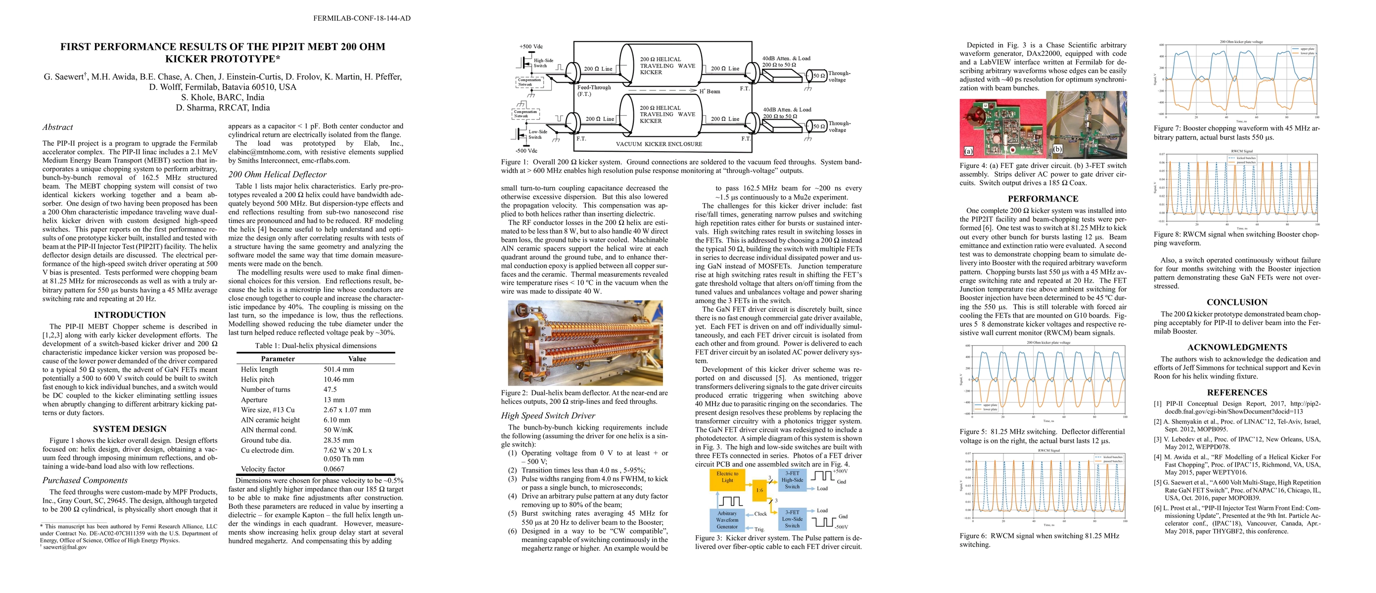 The PIP-II project is a program to upgrade the Fermilab accelerator complex. The PIP-II linac includes a 2.1 MeV Medium Energy Beam Transport (MEBT) section that incorporates a unique chopping system to perform arbitrary, bunch-by-bunch removal of 162.5 MHz structured beam. The MEBT chopping system will consist of two identical kickers working together and a beam absorber. One design of two having been proposed has been a 200 Ohm characteristic impedance traveling wave dual-helix kicker driven with custom designed high-speed switches. This paper reports on the first performance results of one prototype kicker built, installed and tested with beam at the PIP-II Injector Test (PIP2IT) facility. The helix deflector design details are discussed. The electrical performance of the high-speed switch driver operating at 500 V bias is presented. Tests performed were chopping beam at 81.25 MHz for microseconds as well as with a truly arbitrary pattern for 550 $\mu$s bursts having a 45 MHz average switching rate and repeating at 20 Hz.