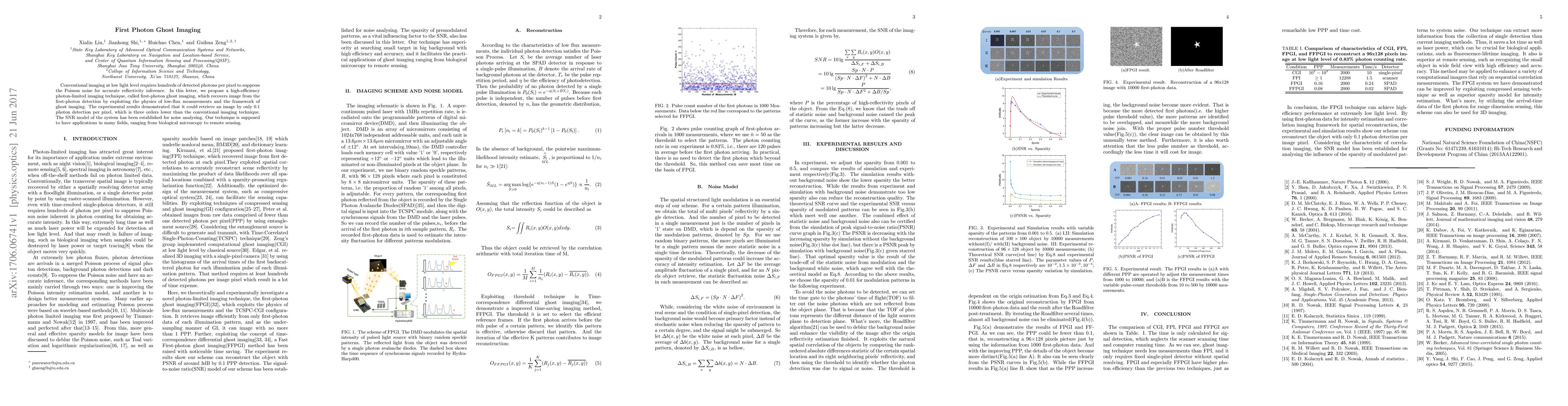 First-photon ghost imaging enables high-efficiency imaging at extremely low light levels by retrieving images from the first detected photon per pixel, significantly reducing noise compared to conventional methods. This technique holds promise for applications in biological microscopy and remote sensing.