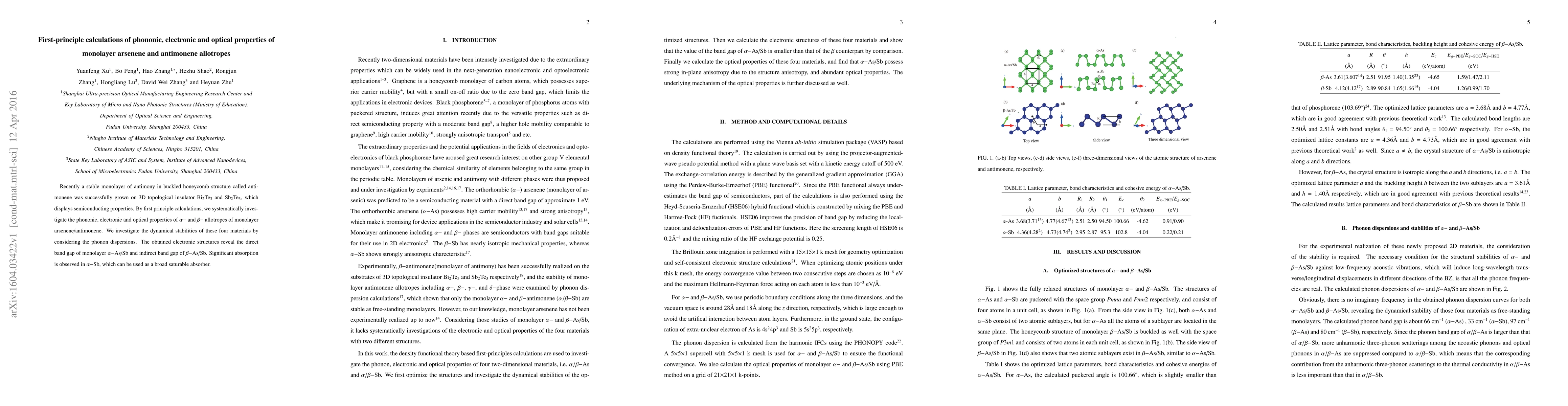 This paper uses first-principle calculations to study the phononic, electronic, and optical properties of monolayer arsenene and antimonene allotropes. The study reveals direct band gaps in α-forms and indirect band gaps in β-forms, with notable absorption in α-Sb, suggesting its potential use as a saturable absorber.