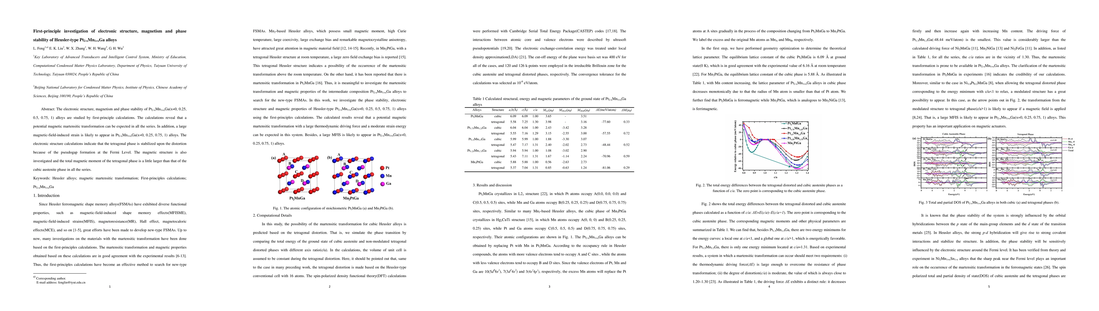 The electronic structure, magnetism and phase stability of Pt2-xMn1+xGa(x=0, 0.25, 0.5, 0.75, 1) alloys are studied by first-principle calculations. The calculations reveal that a potential magnetic martensitic transformation can be expected in all the series. In addition, a large magnetic-field-induced strain is likely to appear in Pt2-xMn1+xGa(x=0, 0.25, 0.75, 1) alloys. The electronic structure calculations indicate that the tetragonal phase is stabilized upon the distortion because of the pseudogap formation at the Fermi Level. The magnetic structure is also investigated and the total magnetic moment of the tetragonal phase is a little larger than that of the cubic austenite phase in all the series.
