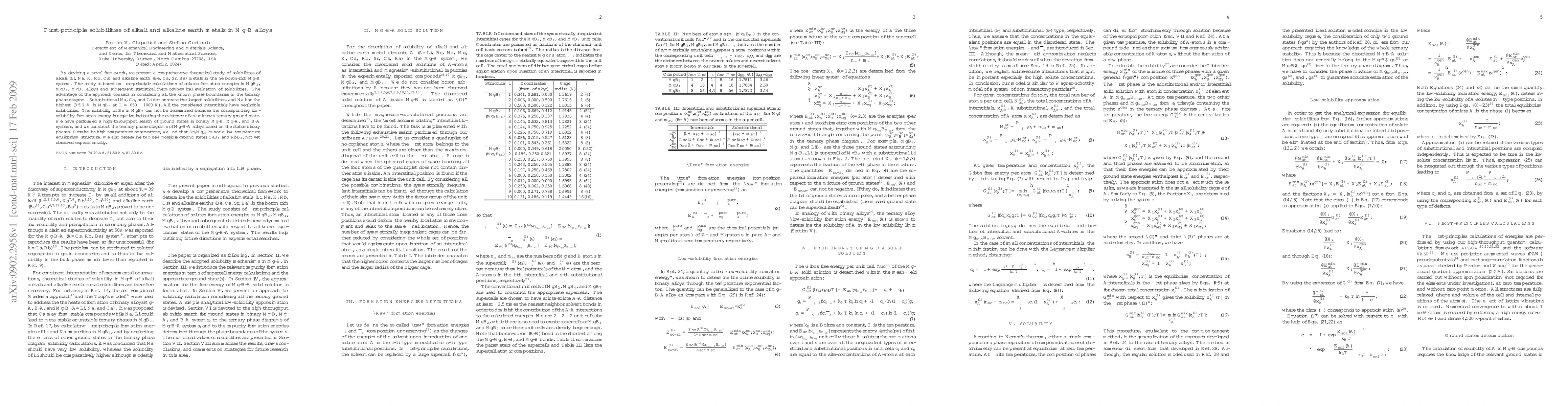This research provides a theoretical study of solubilities of alkali and alkaline earth metals in Mg-B alloys using first-principle calculations, revealing that Na, Ca, and Li have the highest solubilities, while interstitials show negligible solubility. The study also identifies potential new ground states in ternary Mg-B-A alloys.