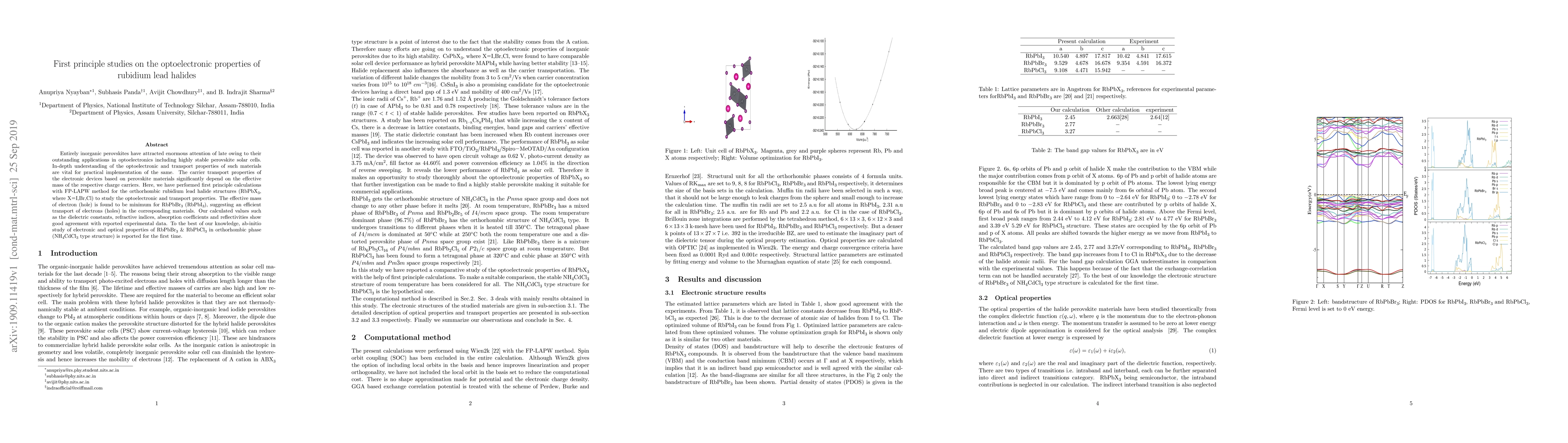 Entirely inorganic perovskites have attracted enormous attention of late owing to their outstanding applications in optoelectronics including highly stable perovskite solar cells. In-depth understanding of the optoelectronic and transport properties of such materials are vital for practical implementation of the same. The carrier transport properties of the electronic devices based on perovskite materials significantly depend on the effective mass of the respective charge carriers. Here, we have performed first principle calculations with FP-LAPW method for the orthorhombic rubidium lead halide structures (\ch{RbPbX_3}, where \ch{X=I,Br,Cl}) to study the optoelectronic and transport properties. The effective mass of electron (hole) is found to be minimum for \ch{RbPbBr_3} (\ch{RbPbI_3}), suggesting an efficient transport of electrons (holes) in the corresponding materials. Our calculated values such as the dielectric constants, refractive indices, absorption coefficients and reflectivities show good agreement with reported experimental data. To the best of our knowledge, ab-initio study of electronic and optical properties of \ch{RbPbBr_3} \& \ch{RbPbCl_3} in orthorhombic phase (\ch{NH_4CdCl_3} type structure) is reported for the first time.