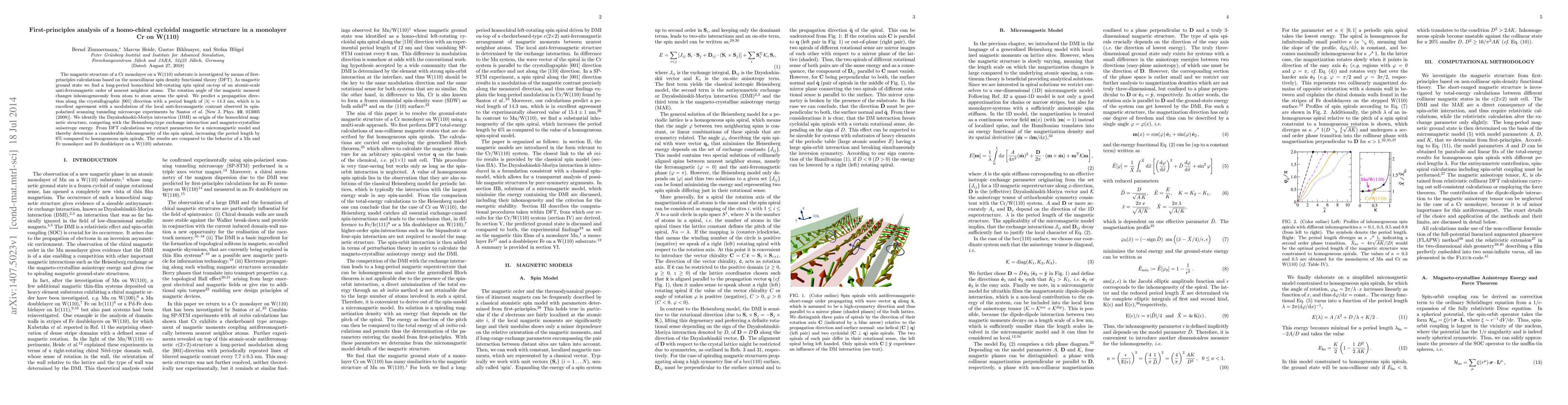 The magnetic structure of a Cr monolayer on a W(110) substrate is investigated by means of first-principles calculations based on the noncollinear spin density functional theory (DFT). As magnetic ground state we find a long-period homochiral left-rotating spin spiral on-top of an atomic-scale anti-ferromagnetic order of nearest neighbor atoms. The rotation angle of the magnetic moment changes inhomogeneously from atom to atom across the spiral. We predict a propagation direction along the crystallographic [001] direction with a period length of 14.3 nm, which is in excellent agreement with a modulation of the local anti-ferromagnetic contrast observed in spin-polarized scanning tunneling microscope experiments by Santos et al. [New J. Phys. 10, 013005 (2008)]. We identify the Dzyaloshinskii-Moriya interaction (DMI) as origin of the homochiral magnetic structure, competing with the Heisenberg-type exchange interaction and magneto-crystalline anisotropy energy. From DFT calculations we extract parameters for a micromagnetic model and thereby determine a considerable inhomogeneity of the spin spiral, increasing the period length by 6% compared to homogeneous spin spirals. The results are compared to the behavior of a Mn and Fe monolayer and Fe doublelayer on a W(110) substrate.