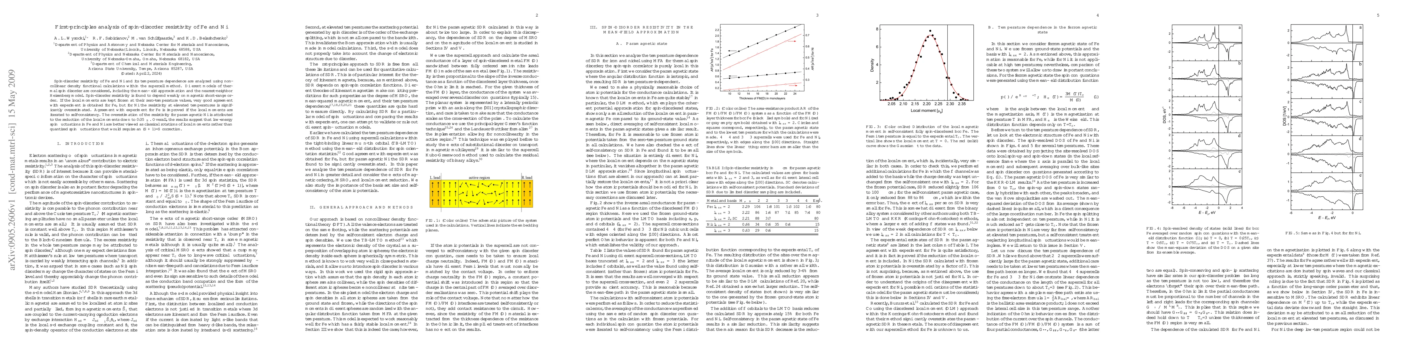 This study uses first-principles density functional calculations to analyze spin-disorder resistivity in Fe and Ni, finding good agreement with experimental data for Fe when local moments are iterated to self-consistency. For Ni, elevated temperature resistivity is overestimated, likely due to reduced local moments, suggesting classical rotations of local moments better describe low-energy spin fluctuations.