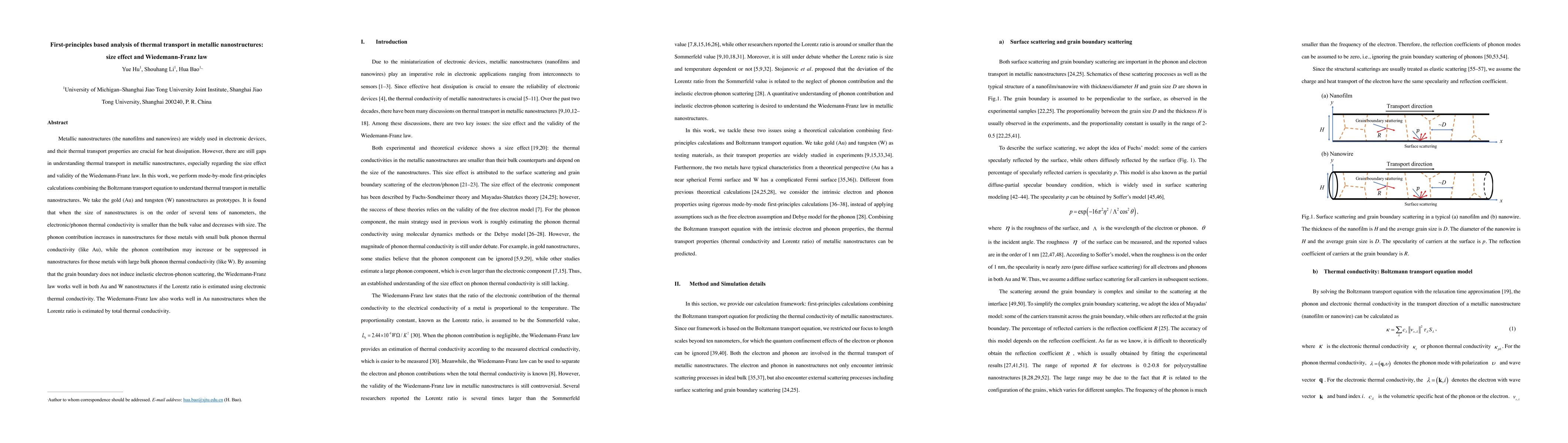 This paper investigates thermal transport in metallic nanostructures using gold (Au) and tungsten (W) as prototypes. It finds that thermal conductivity decreases with size, with phonon contributions varying based on the metal's bulk properties. The Wiedemann-Franz law holds well in these nanostructures when the Lorentz ratio is calculated using electronic thermal conductivity.