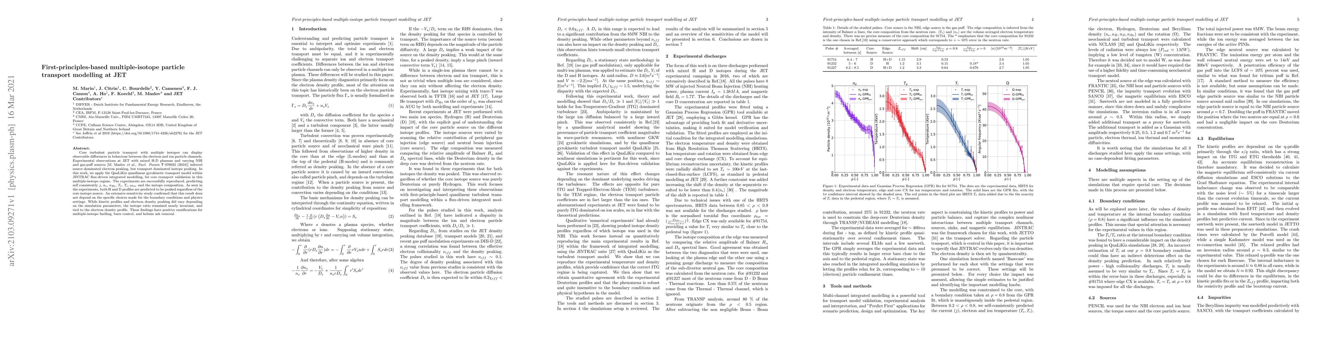 Core turbulent particle transport with multiple isotopes can display observable differences in behaviour between the electron and ion particle channels. Experimental observations at JET with mixed H-D plasmas and varying NBI and gas-puff sources [M. Maslov et al., Nucl. Fusion 7 076022 (2018)] inferred source dominated electron peaking, but transport dominated isotope peaking. In this work, we apply the QuaLiKiz quasilinear gyrokinetic transport model within JINTRAC flux-driven integrated modelling, for core transport validation in this multiple-isotope regime. The experiments are successfully reproduced, predicting self consistently $ j $, $ n_{e} $, $ n_{Be} $, $ T_{e} $, $ T_{i} $, $\omega_{tor}$ and the isotope composition. As seen in the experiments, both H and D profiles are predicted to be peaked regardless of the core isotope source. An extensive sensitivity study confirmed that this result does not depend on the specific choices made for the boundary conditions and physics settings. While kinetic profiles and electron density peaking did vary depending on the simulation parameters, the isotope ratio remained nearly invariant, and tied to the electron density profile. These findings have positive ramifications for multiple-isotope fuelling, burn control, and helium ash removal.