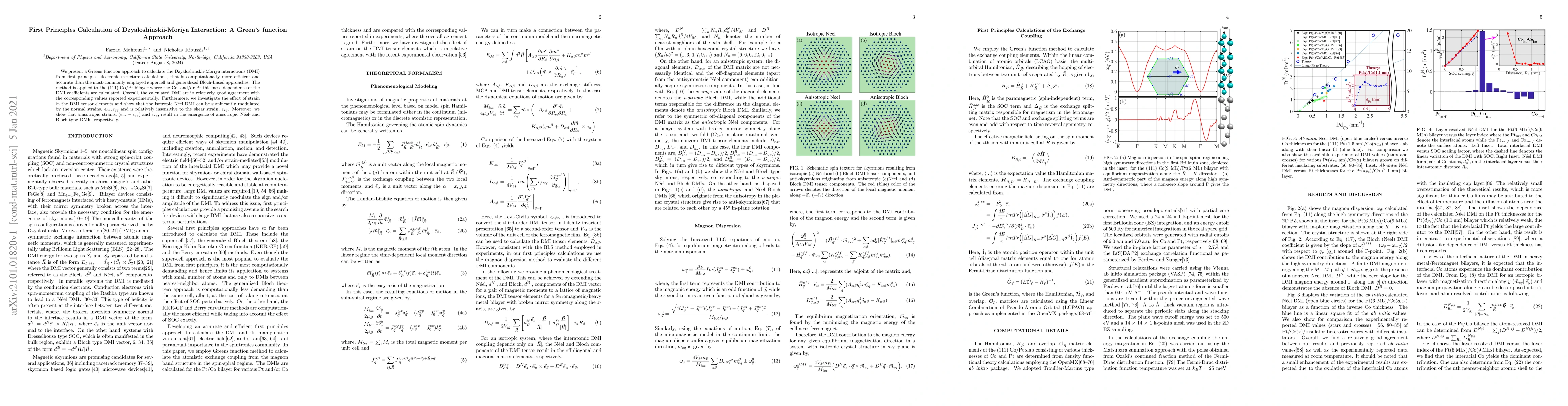 This research introduces a Green's function method for calculating Dzyaloshinskii-Moriya interactions (DMI) from first principles, which is more efficient and accurate than traditional approaches. The method successfully predicts DMI in Co/Pt bilayers, showing that strain significantly modulates DMI, enabling tunability of magnetic properties.