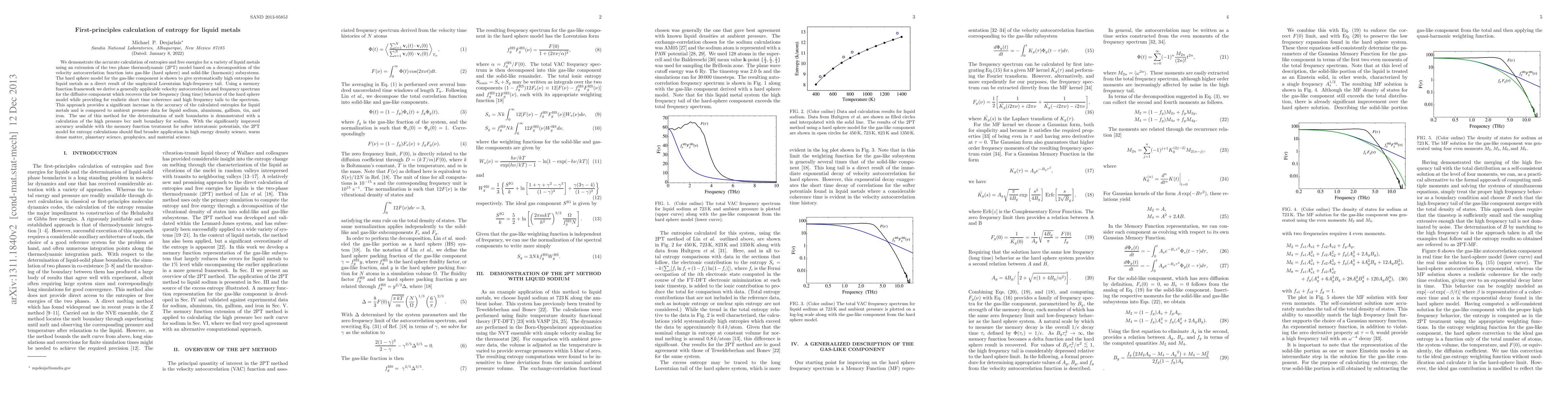 This paper presents an advanced method for calculating the entropy and free energies of liquid metals using a refined two-phase thermodynamic model. The new approach corrects the inaccuracies of the hard sphere model by incorporating realistic short-time coherence and high-frequency tails, significantly improving entropy calculations for metals like sodium, aluminum, gallium, tin, and iron.