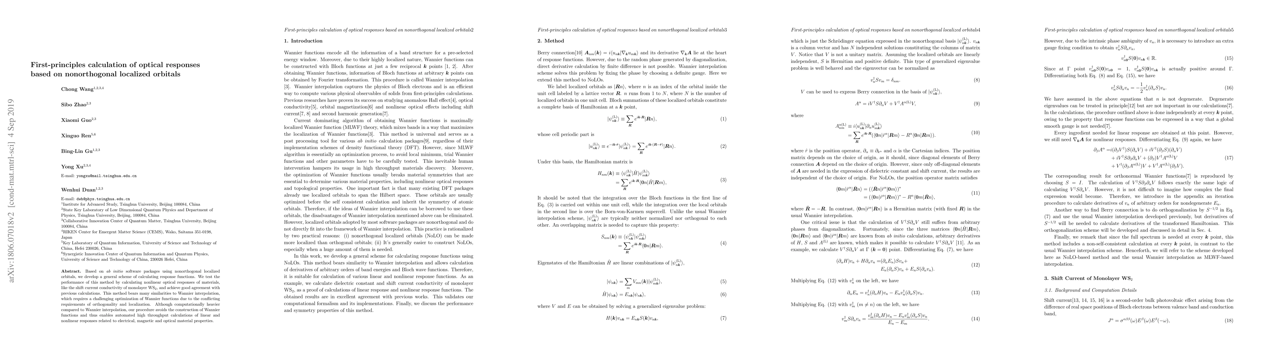 This paper presents a new method for calculating optical response functions using nonorthogonal localized orbitals, avoiding the need for optimizing Wannier functions. The method is tested on monolayer WS2, showing good agreement with previous results and enabling automated high-throughput calculations for various material properties.