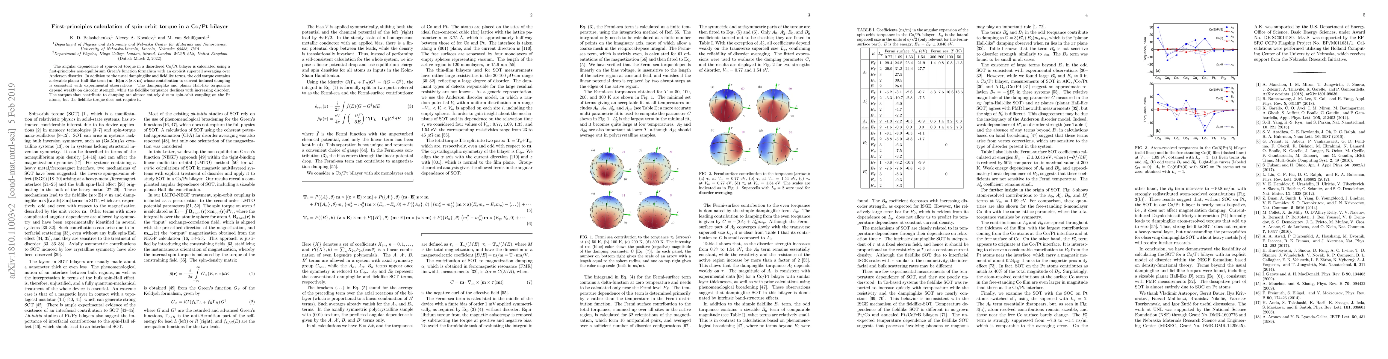 The angular dependence of spin-orbit torque in a disordered Co/Pt bilayer is calculated using a first-principles non-equilibrium Green's function formalism with an explicit supercell averaging over Anderson disorder. In addition to the usual dampinglike and fieldlike terms, the odd torque contains a sizeable planar Hall-like term $(\mathbf{m\cdot E})\mathbf{m}\times(\mathbf{z}\times\mathbf{m})$ whose contribution to current-induced damping is consistent with experimental observations. The dampinglike and planar Hall-like torquances depend weakly on disorder strength, while the fieldlike torquance declines with increasing disorder. The torques that contribute to damping are almost entirely due to spin-orbit coupling on the Pt atoms, but the fieldlike torque does not require it.