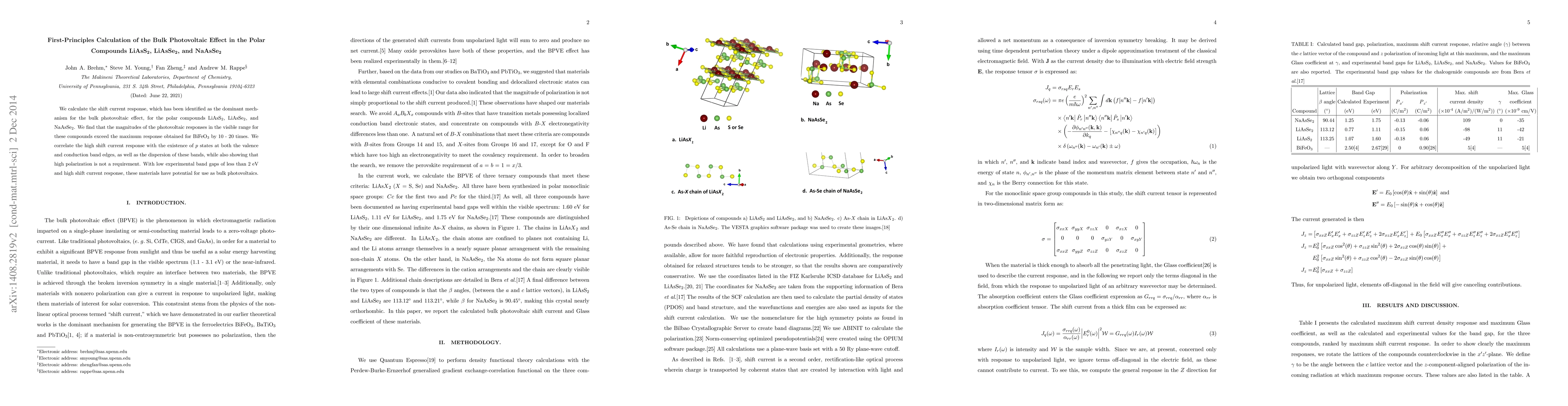 Researchers discovered that three polar compounds (LiAsS2, LiAsSe2, and NaAsSe2) exhibit high shift current responses for the bulk photovoltaic effect, exceeding previous records by 10-20 times. This suggests these materials have potential as low-cost, efficient solar cells.