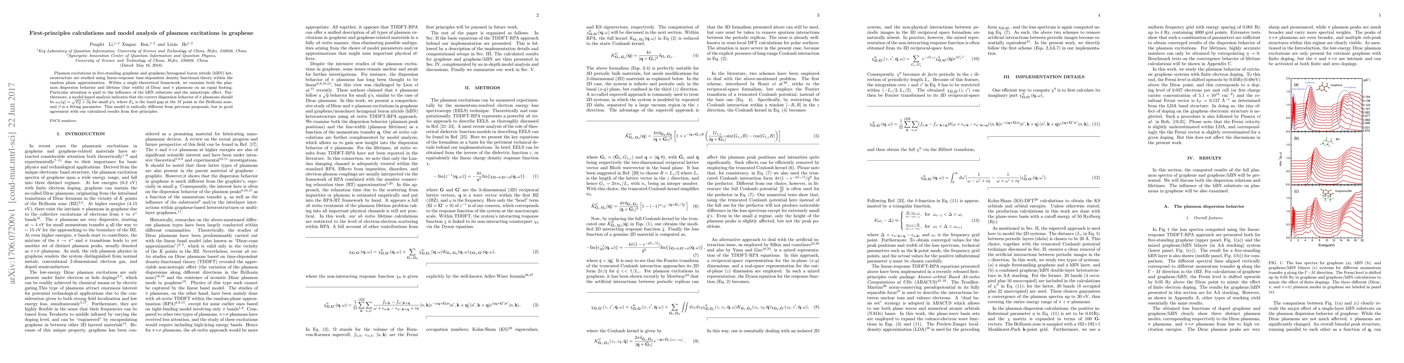 This paper investigates plasmon excitations in graphene and graphene/hBN heterostructures using first-principles calculations and model analysis. It reveals a novel dispersion behavior for $\pi$ plasmons, $\omega_\pi(q) = \sqrt{E_g^2 + \beta q}$, differing from previous models but consistent with the authors' theoretical findings.
