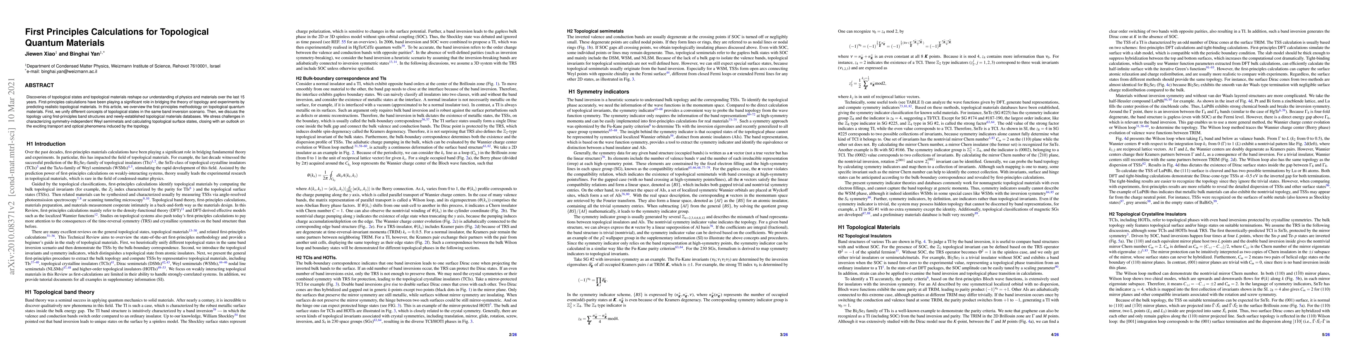 This paper reviews first-principles methodologies for predicting topological quantum materials, unifying various topological states within band inversion, and highlights challenges in characterizing Weyl semimetals and topological surface states, while looking forward to their transport and optical phenomena.
